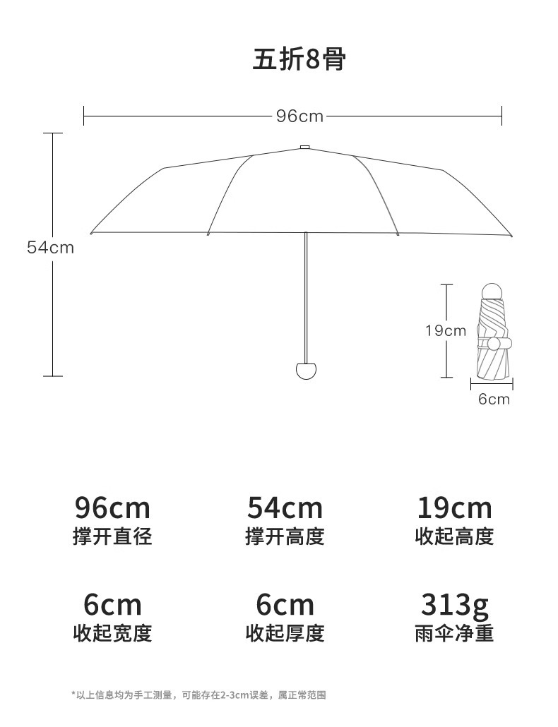 • [검정 아교 6 배 플랫 우산] 파우더 모란 (초경량 휴대용)