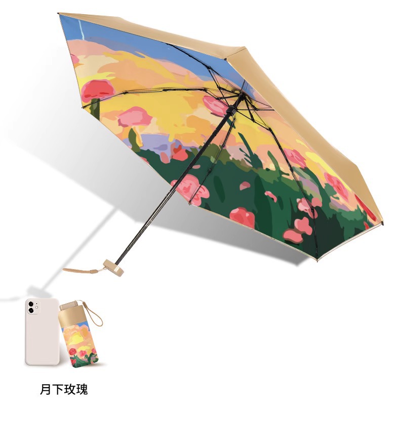• [블랙 접착제 60% 접기 플랫 우산] 달 아래 장미 (초경량 및 휴대용)