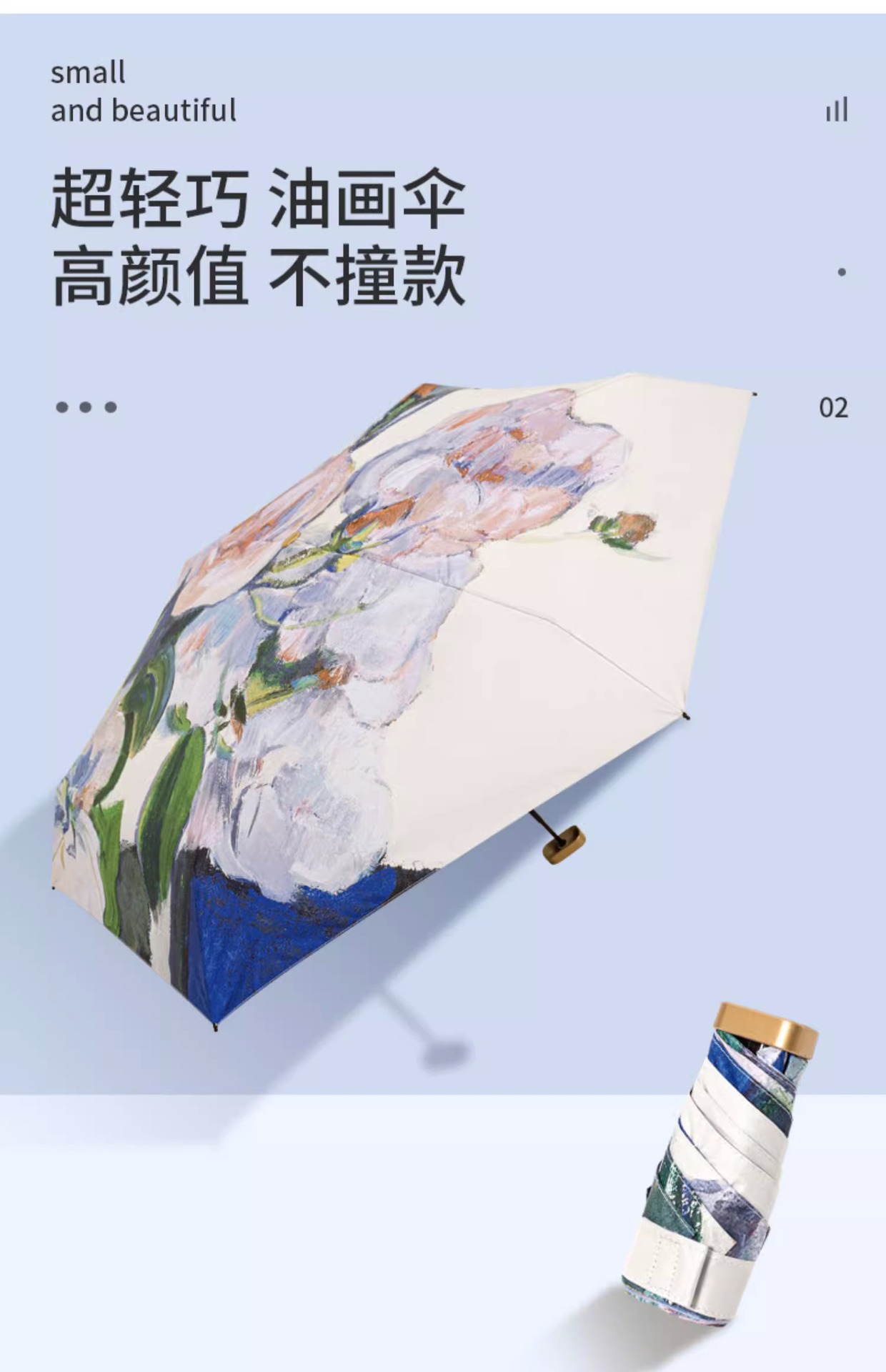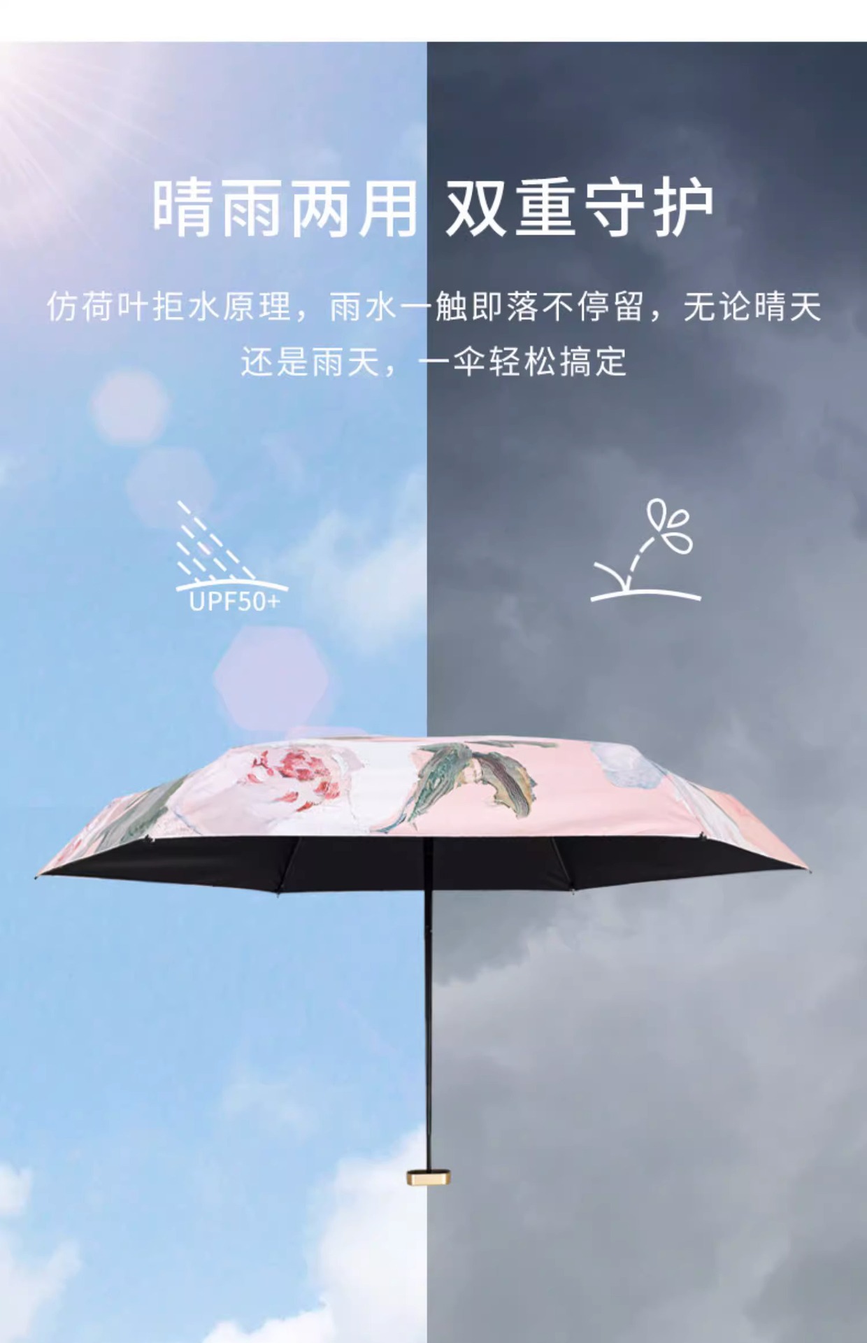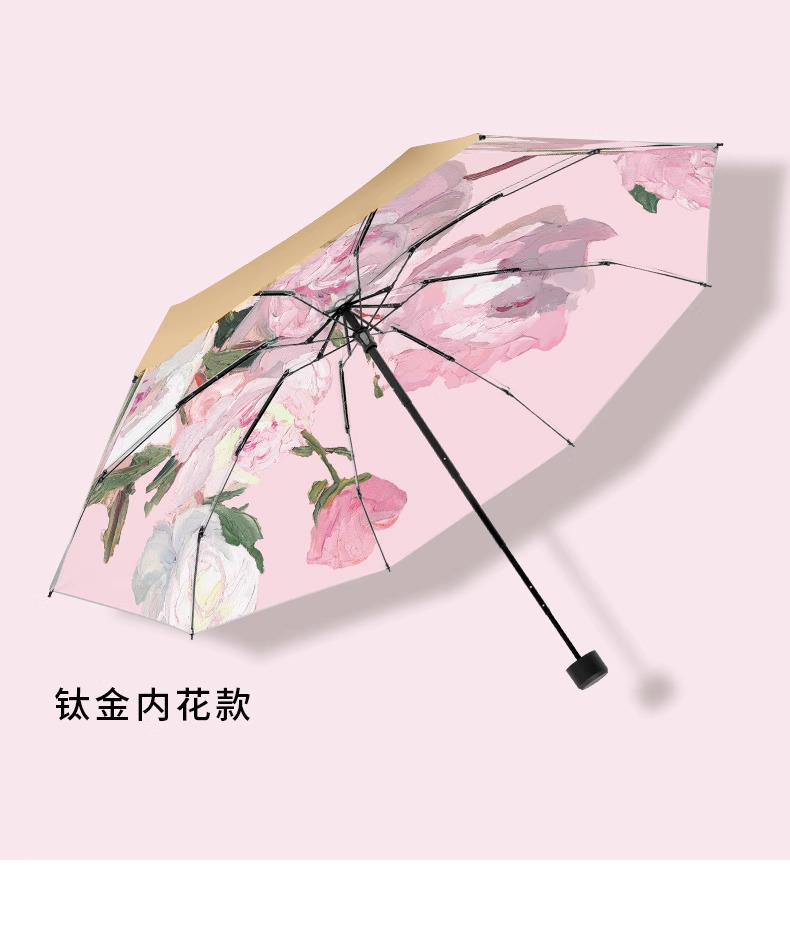 • 티타늄 골드 육중 플랫 우산] 파우더 모란 (초경량 휴대용)