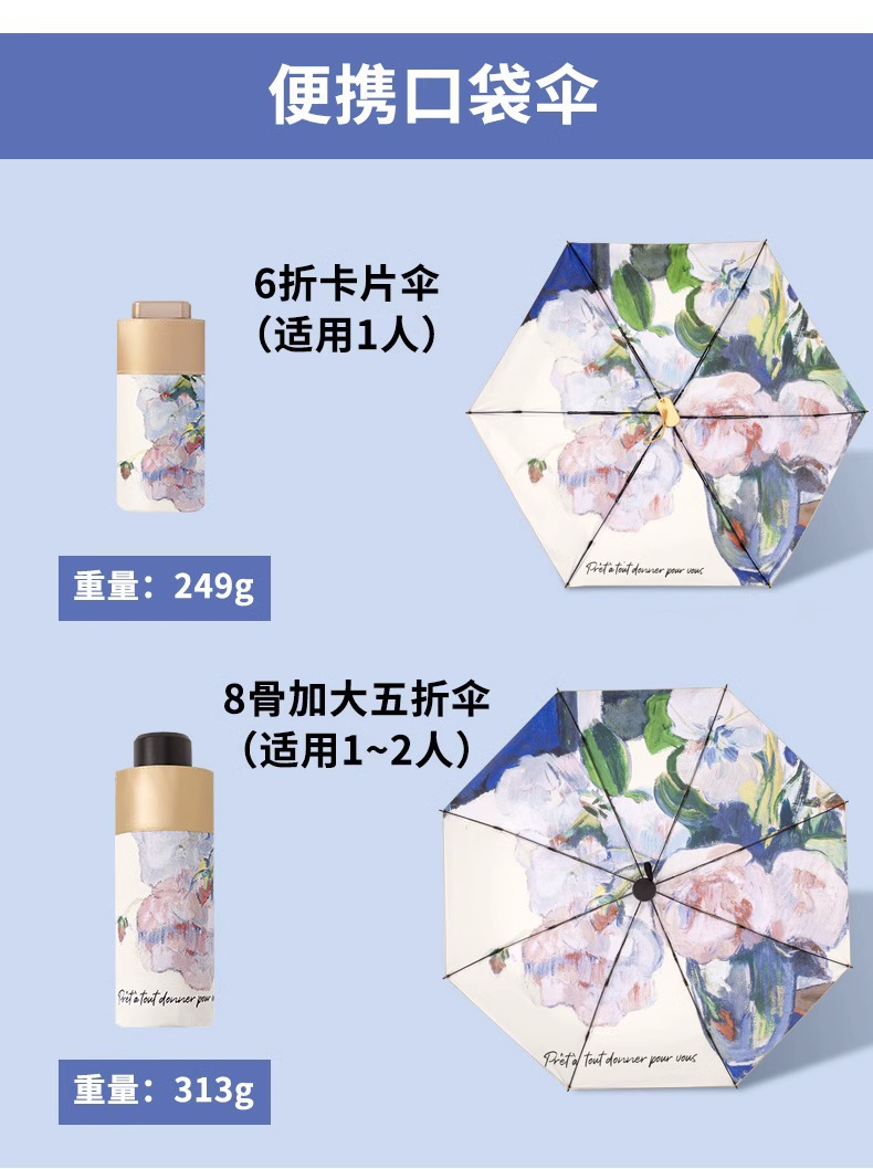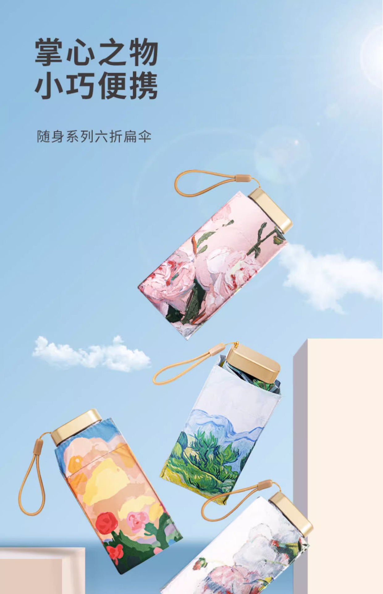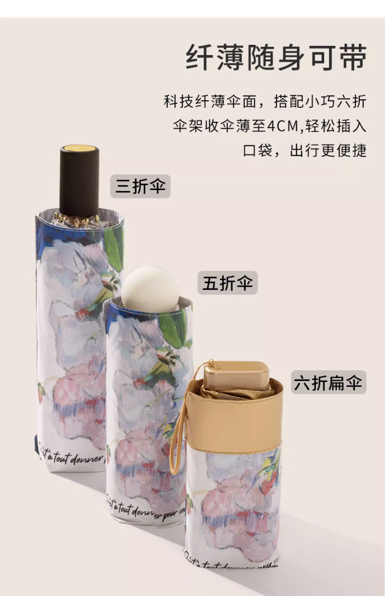 • 티타늄 골드 육중 플랫 우산] 파우더 모란 (초경량 휴대용)