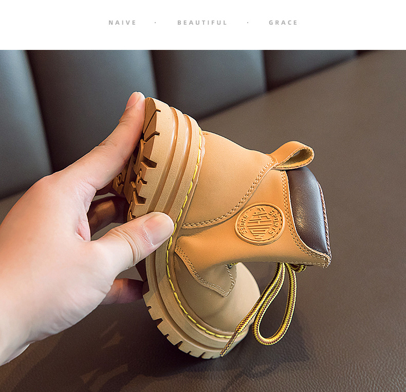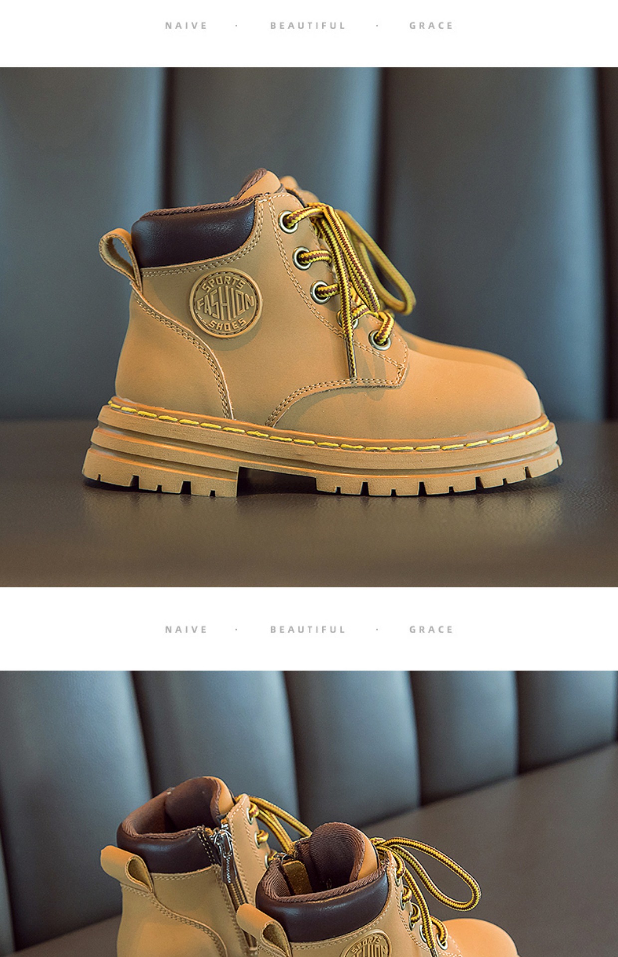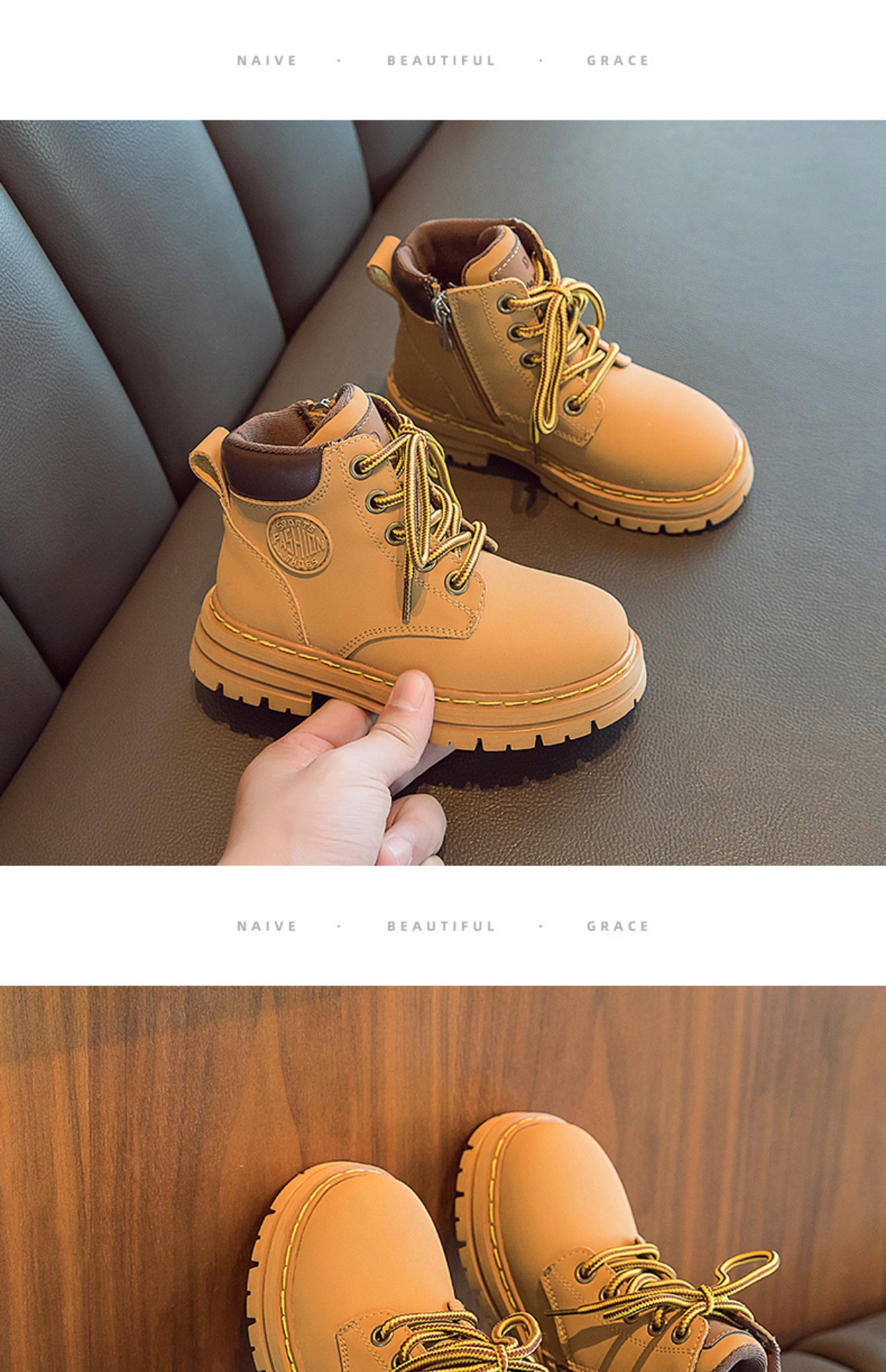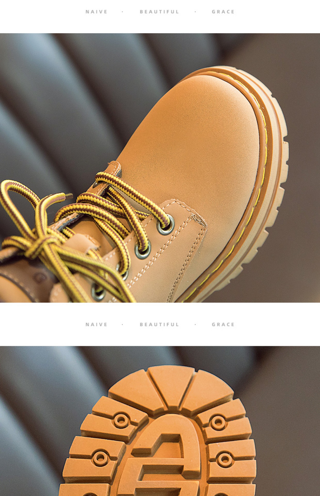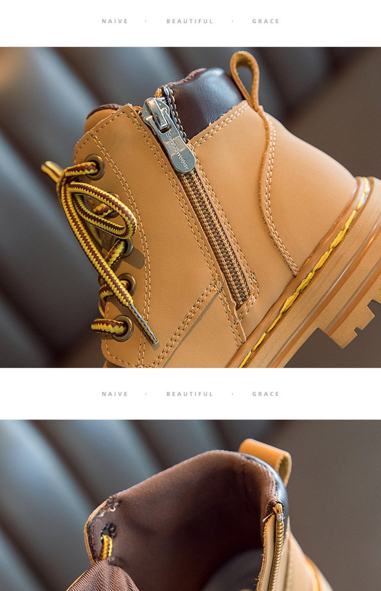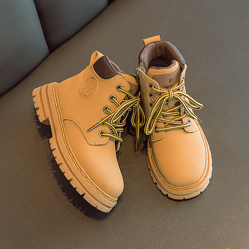 아동용 옐로우 부츠 여아 소가죽 기모 마틴 부츠 가을과 겨울 남아 스트리트 프라이드 브리티시 스타일 앵클 부츠 모든 매치 소프트 솔 부츠