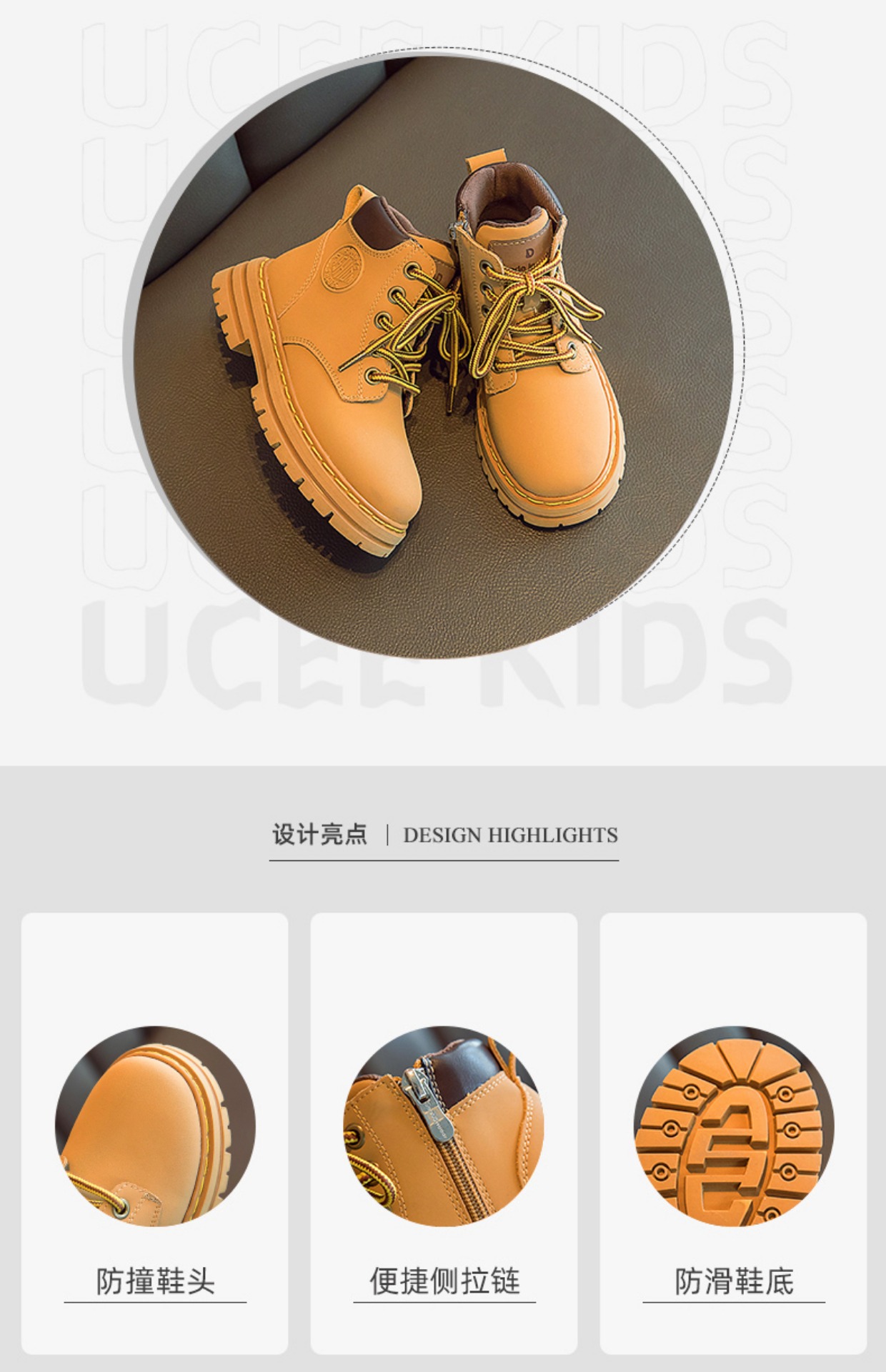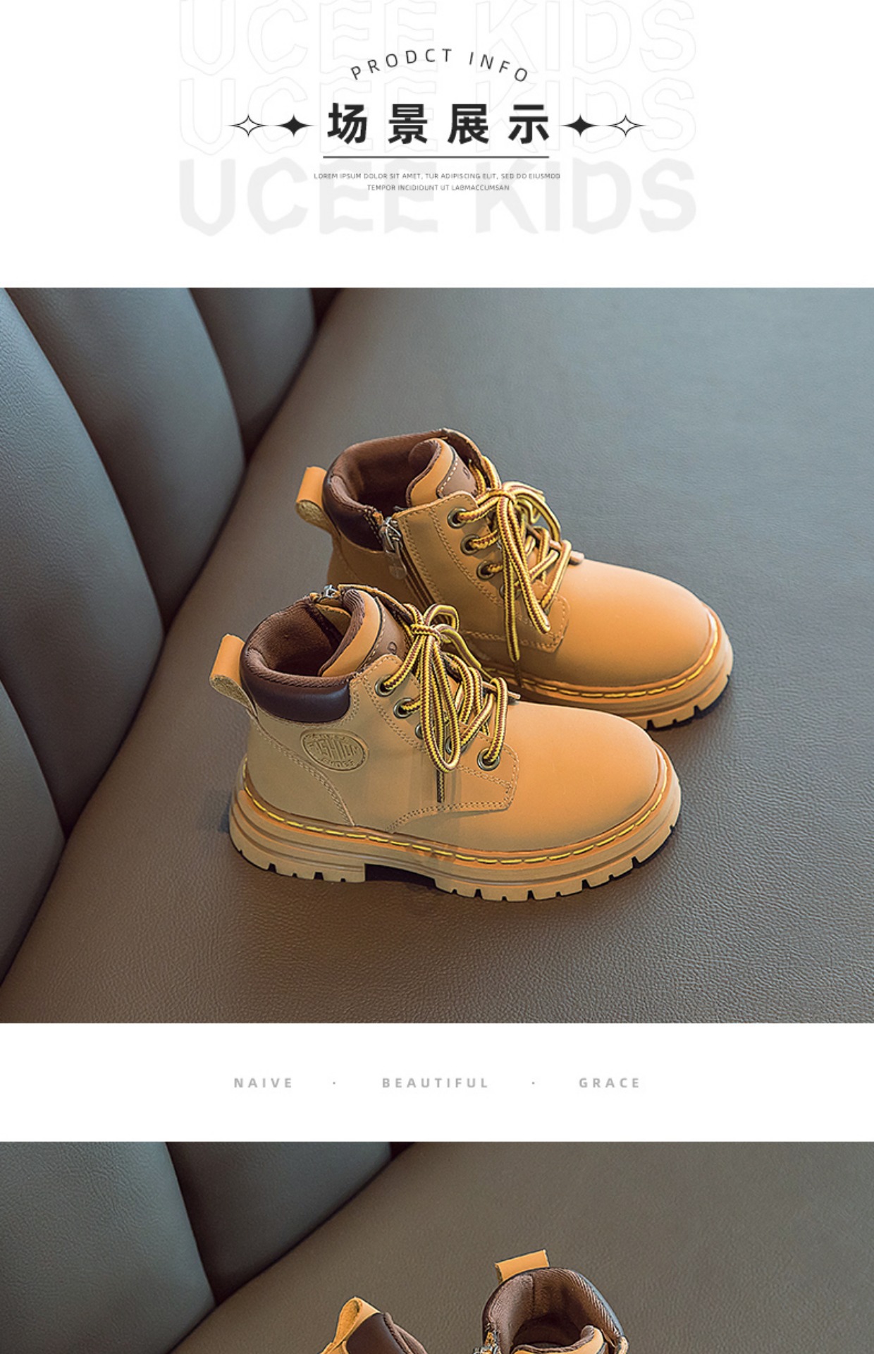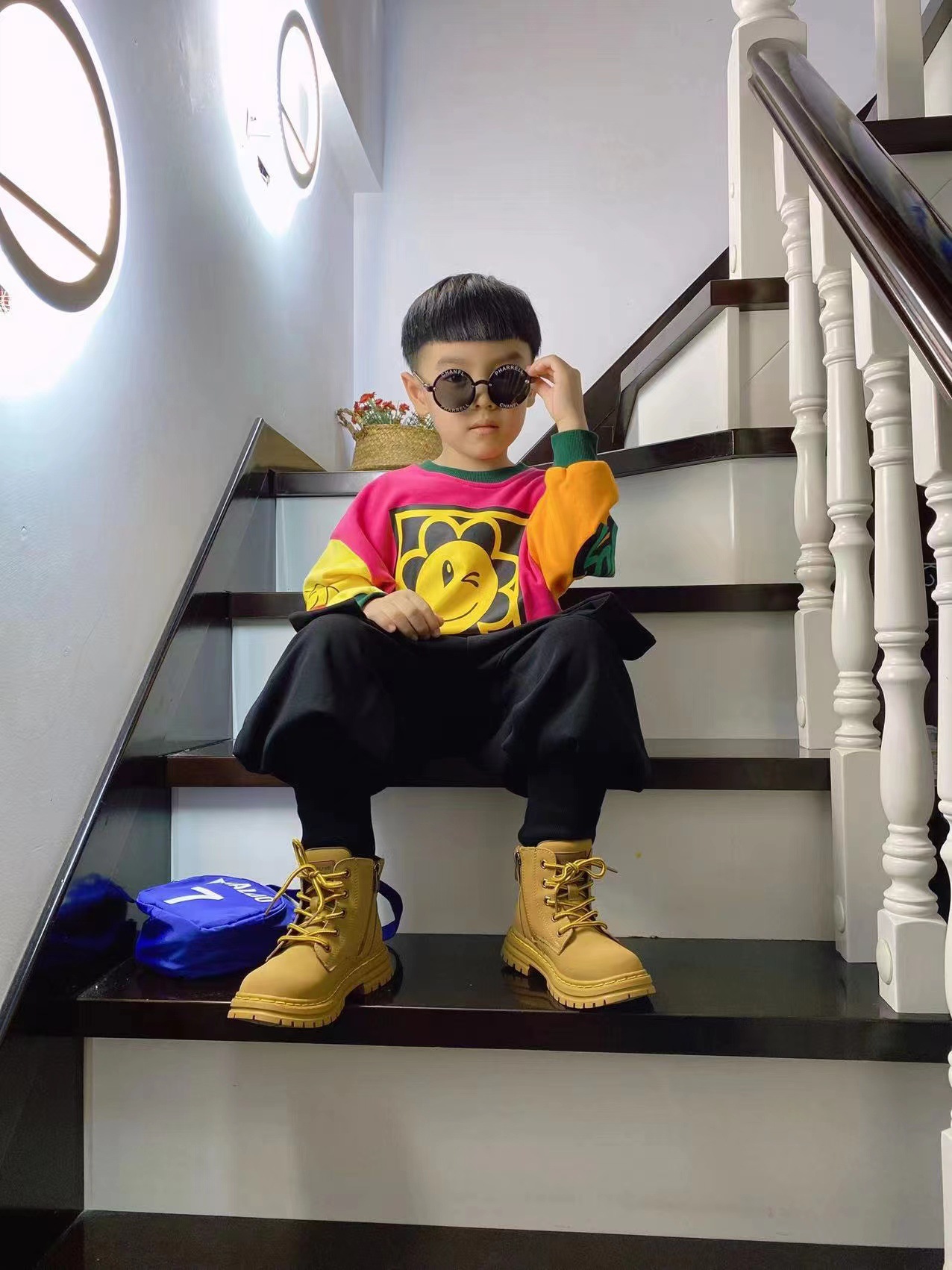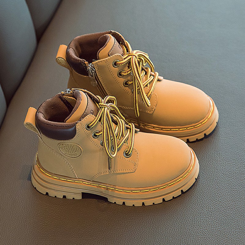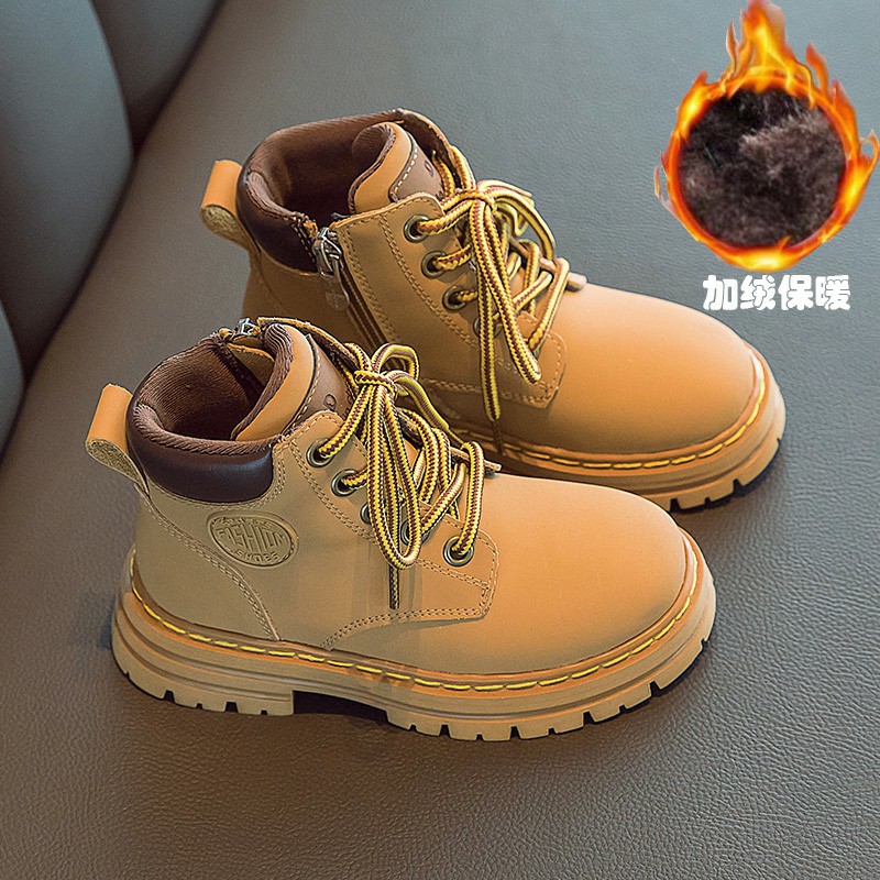 아동용 옐로우 부츠 여아 소가죽 기모 마틴 부츠 가을과 겨울 남아 스트리트 프라이드 브리티시 스타일 앵클 부츠 모든 매치 소프트 솔 부츠스토어 가기