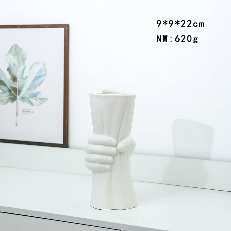 간단한 크로스 테두리 세라믹 꽃병 장식품 거실 꽃 장치 물 모금 꽃 홈스테이 레스토랑 데스크탑 입구 장식