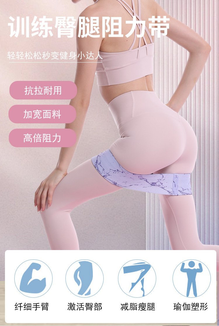 瑜伽伸展带虐臀圈乳胶防滑弹力带深蹲翘臀阻力带拉力带棉质拉伸带