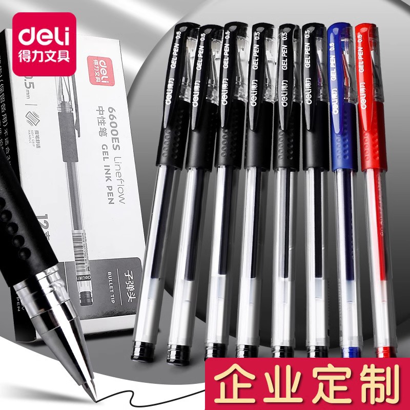 델리 6600es 젤 펜 블랙 0.5mm 총알형 펜촉 캡 탈부착식 수성펜 블루 레드 사인펜 사무용 학생용