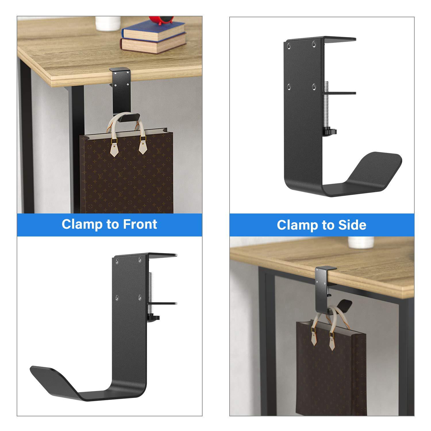 【桌钩下的通用支架】 非常适合各种耳机,也非常适合悬挂、电缆和其他小工具,例如耳机、Xbox 的有线或无线游戏耳机、PS4、PC 耳机,它也可以用于包、伞形、背包衣架和钱包衣架,方便地将物品放在桌子或架子下面,不碍事。