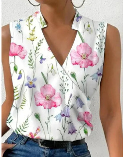 2023 여름 새로운 크로스 보더 유럽, 미국, 일본 및 한국 캐주얼 여성용 단색 풀오버 민소매 여성용 V-넥 탑 셔츠