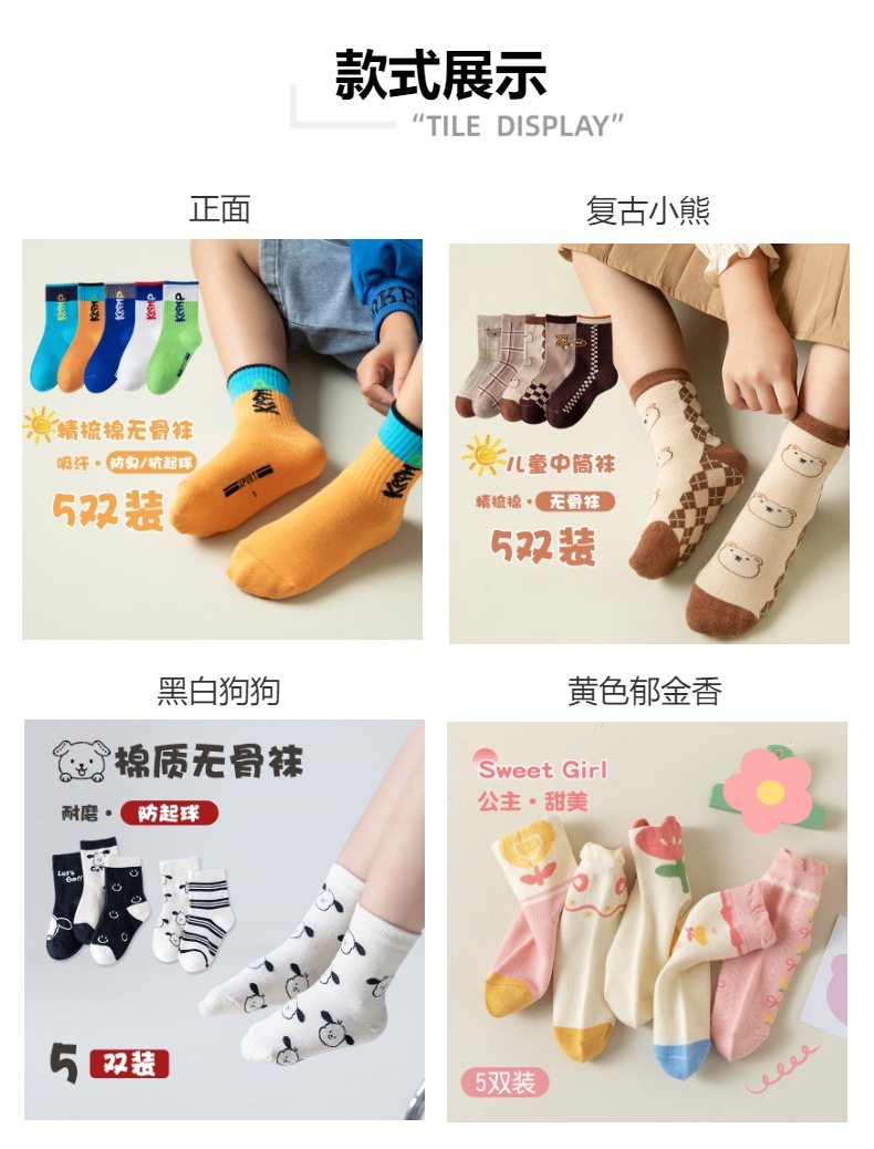 어린이 양말 봄과 가을 면화 중간 튜브 양말 일본 줄무늬 만화 소년과 소녀 유행 패션 스타킹