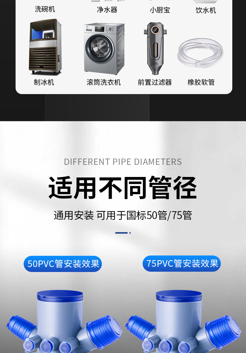 주방 배수관 3 방향 냄새 분리기 싱크대 정수기 식기 세척기 세탁기 75 배수관 6 방향스토어 가기