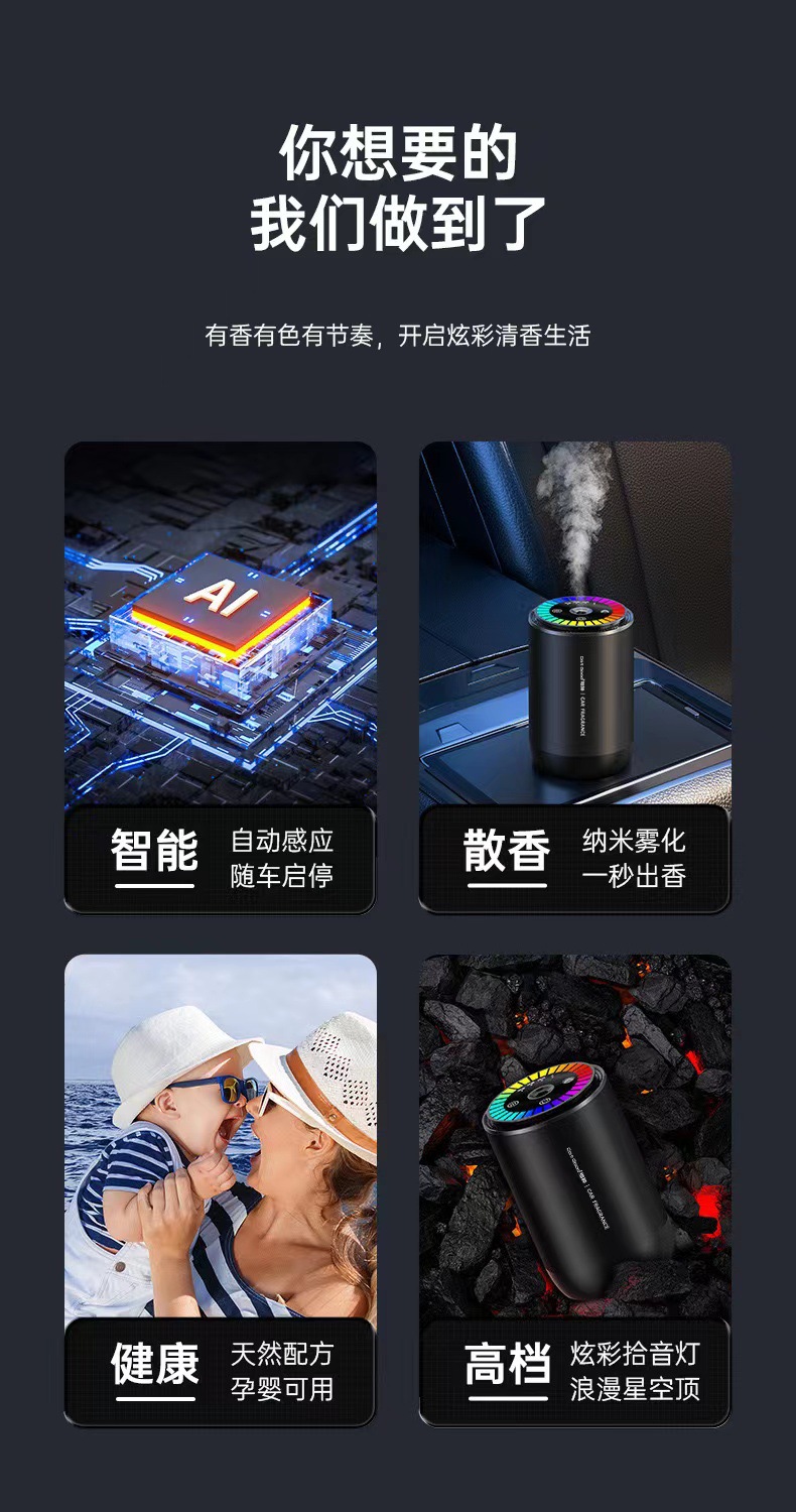 신차 아로마 테라피 스타 탑 픽업 램프 자동차 아로마 테라피 기계 온보드 음성 제어 아로마 냄새 제거 분무기