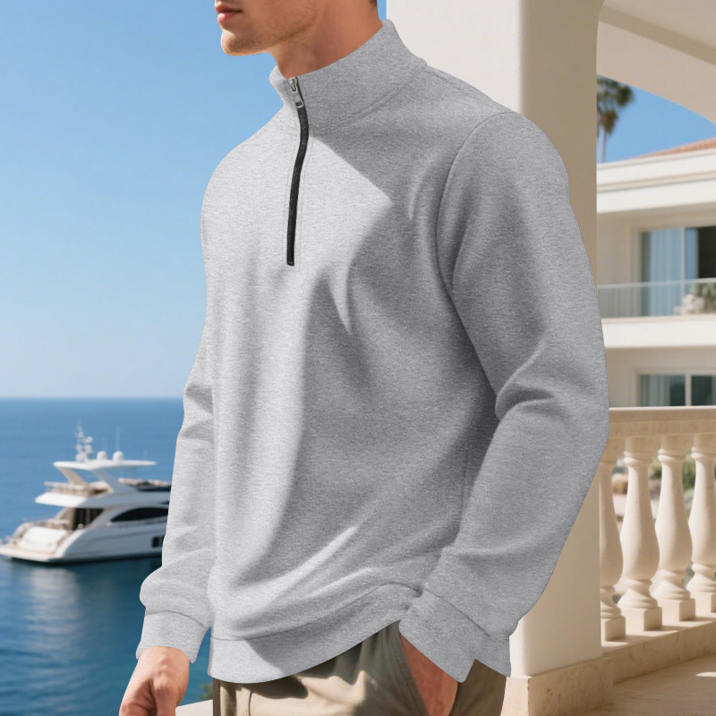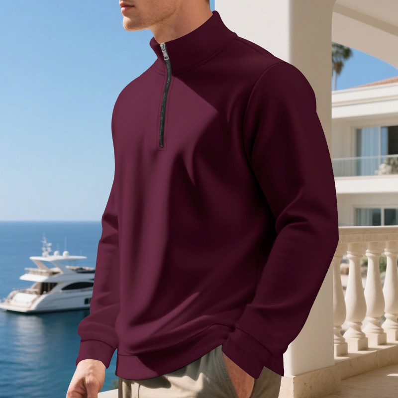 2023 독립 역 플러스 사이즈 가을과 겨울 기모 하프 지퍼 풀오버 단색 캐주얼 스웨터 남성 크로스 보더 스페셜