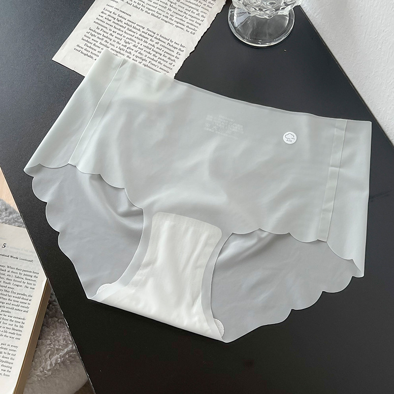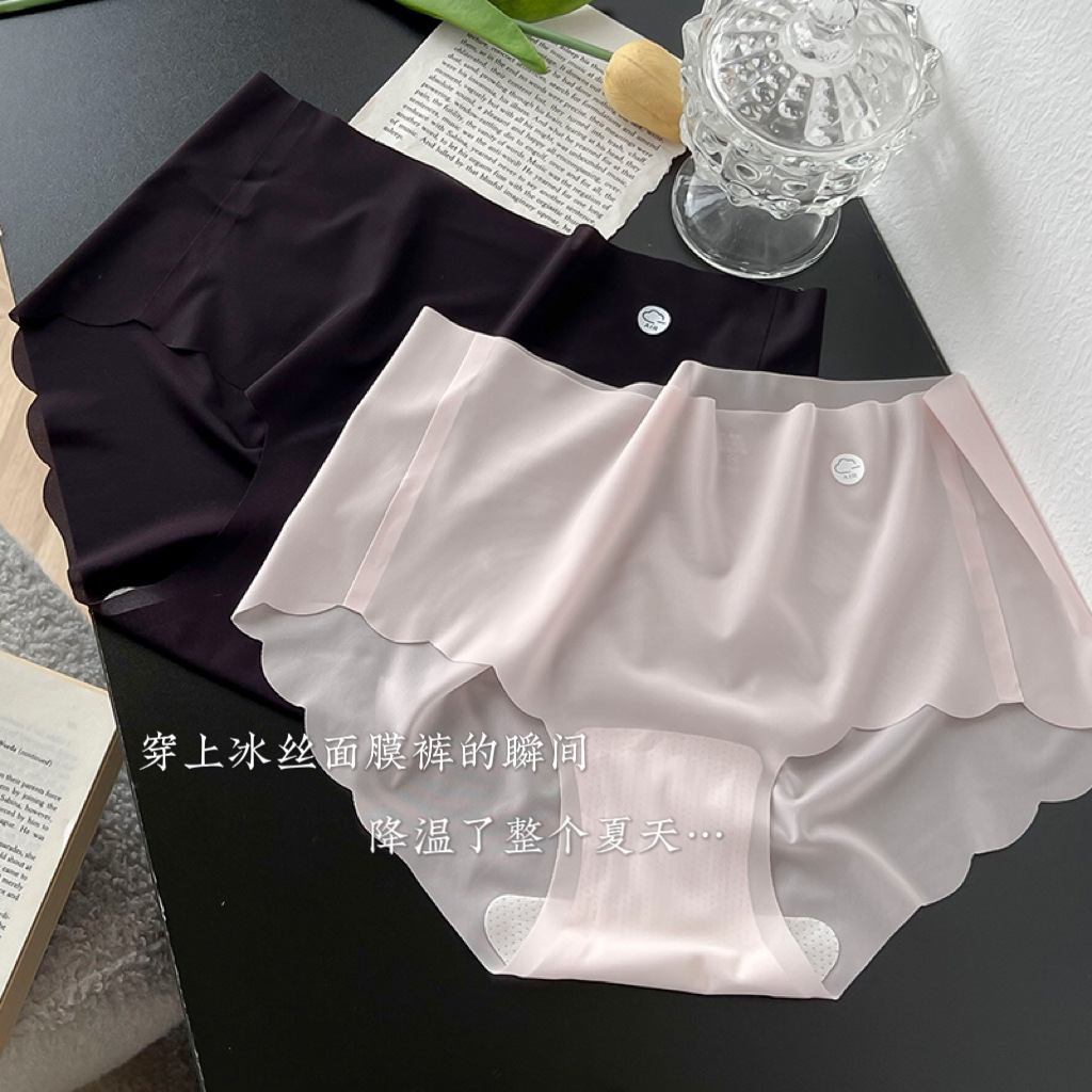 여자 업그레이드 3D 울트라 씬 마스크 바지 미드 웨이스트 원활한 아이스 실크 팬티 사계절 면 면 가랑이 속옷