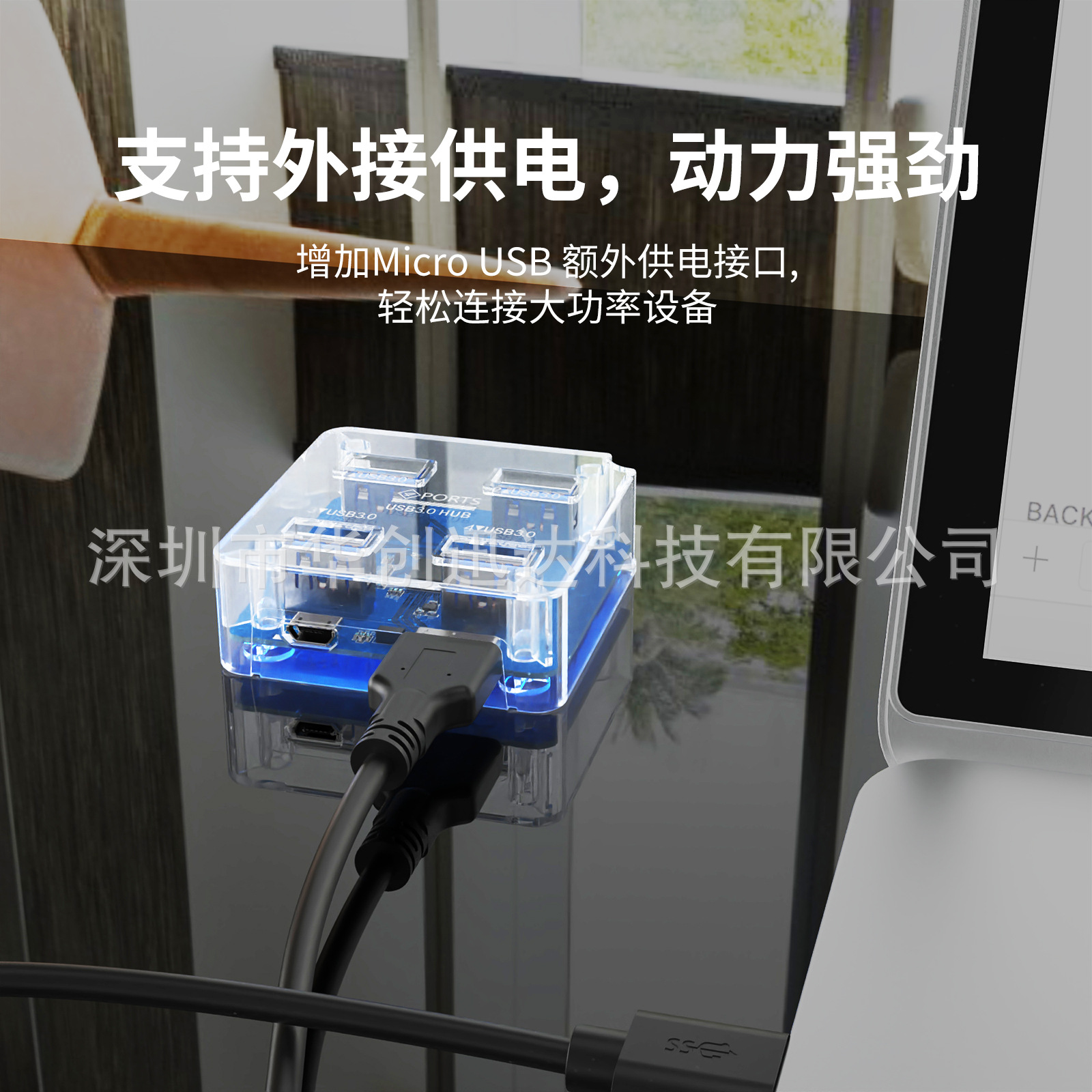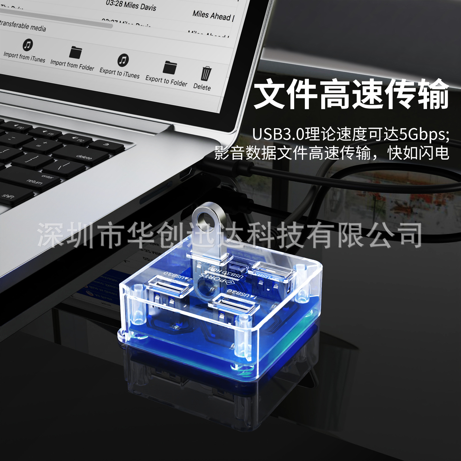 개인 모델 USB3.0 스플리터 4 포트 허브 허브 투명 1 대 4 컴퓨터 다기능 도킹 스테이션 익스텐더스토어 가기