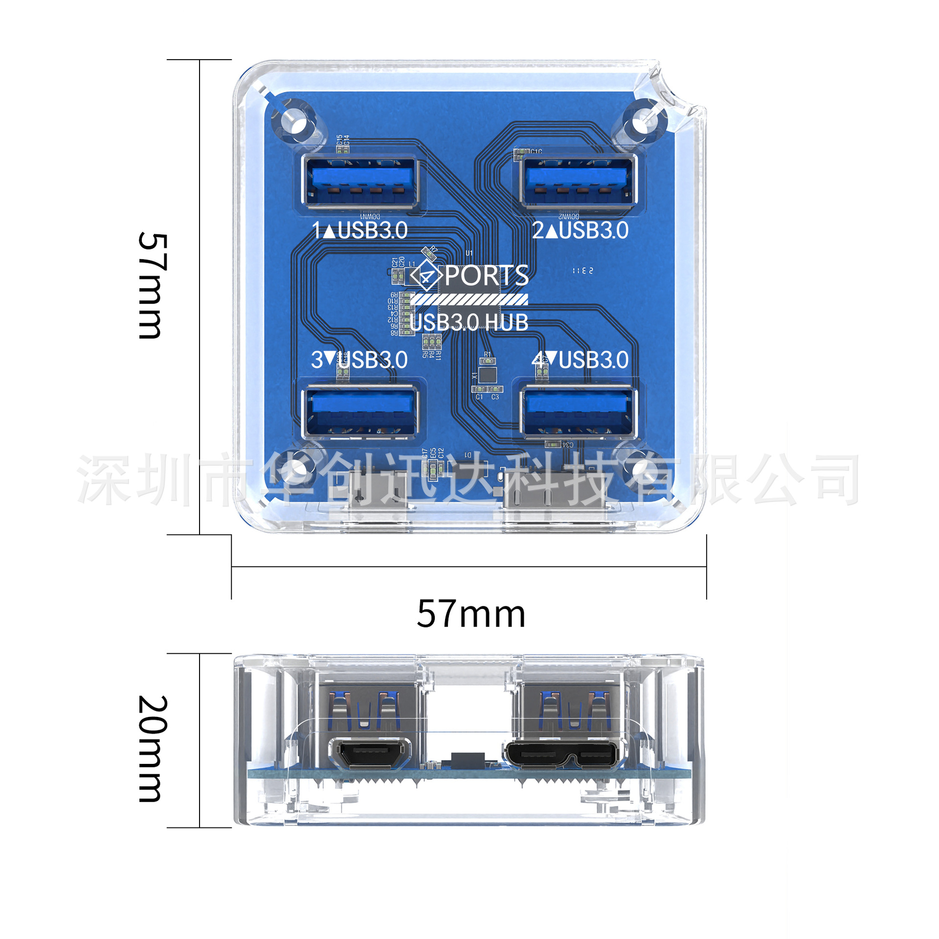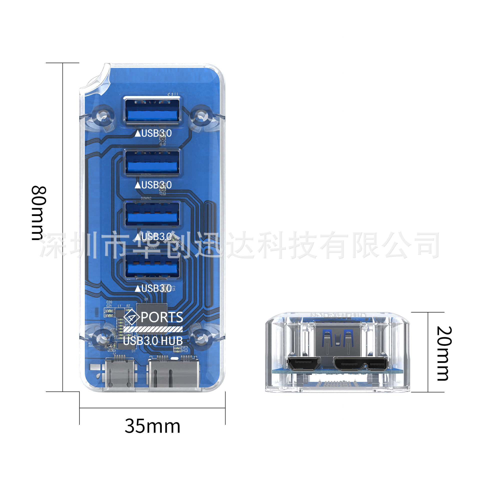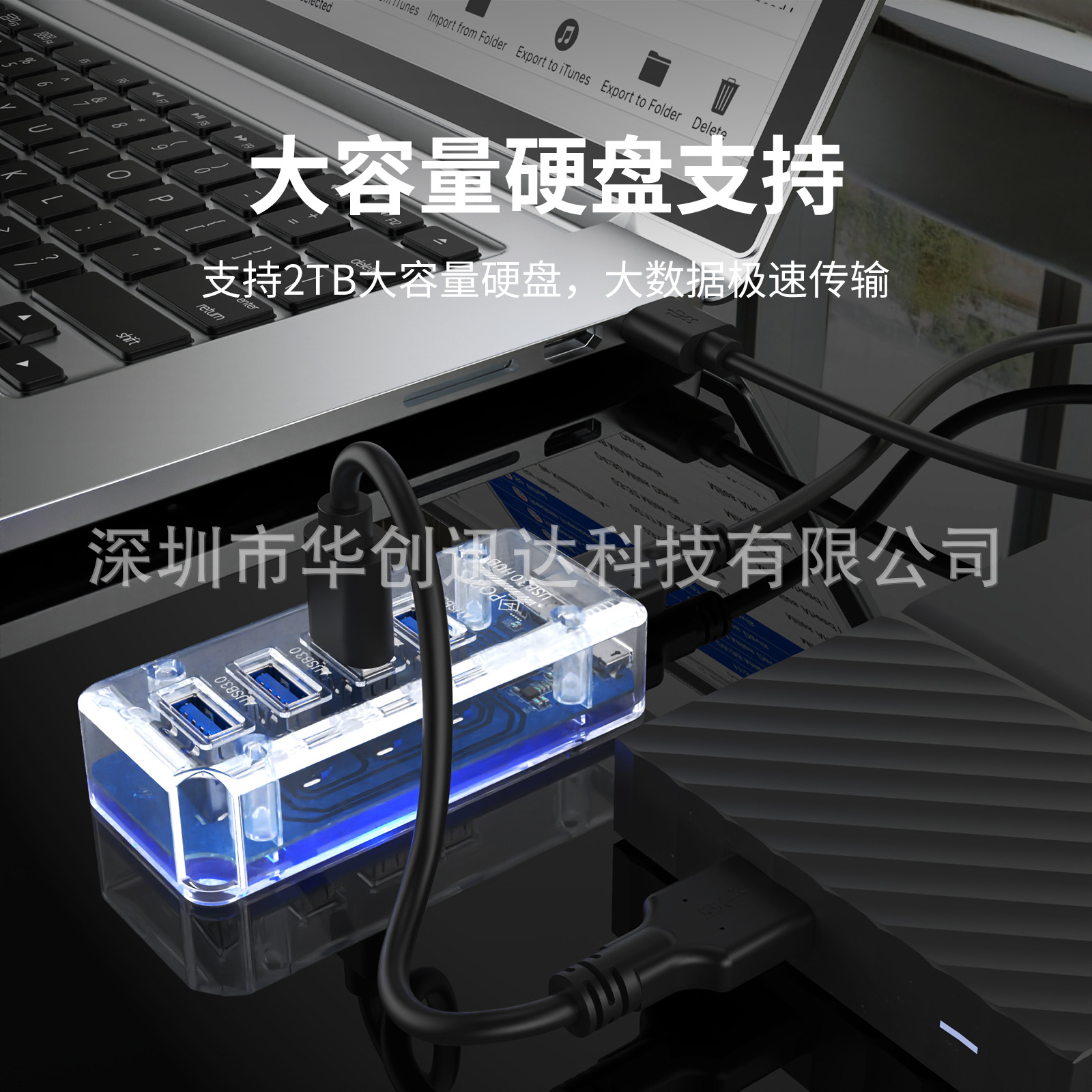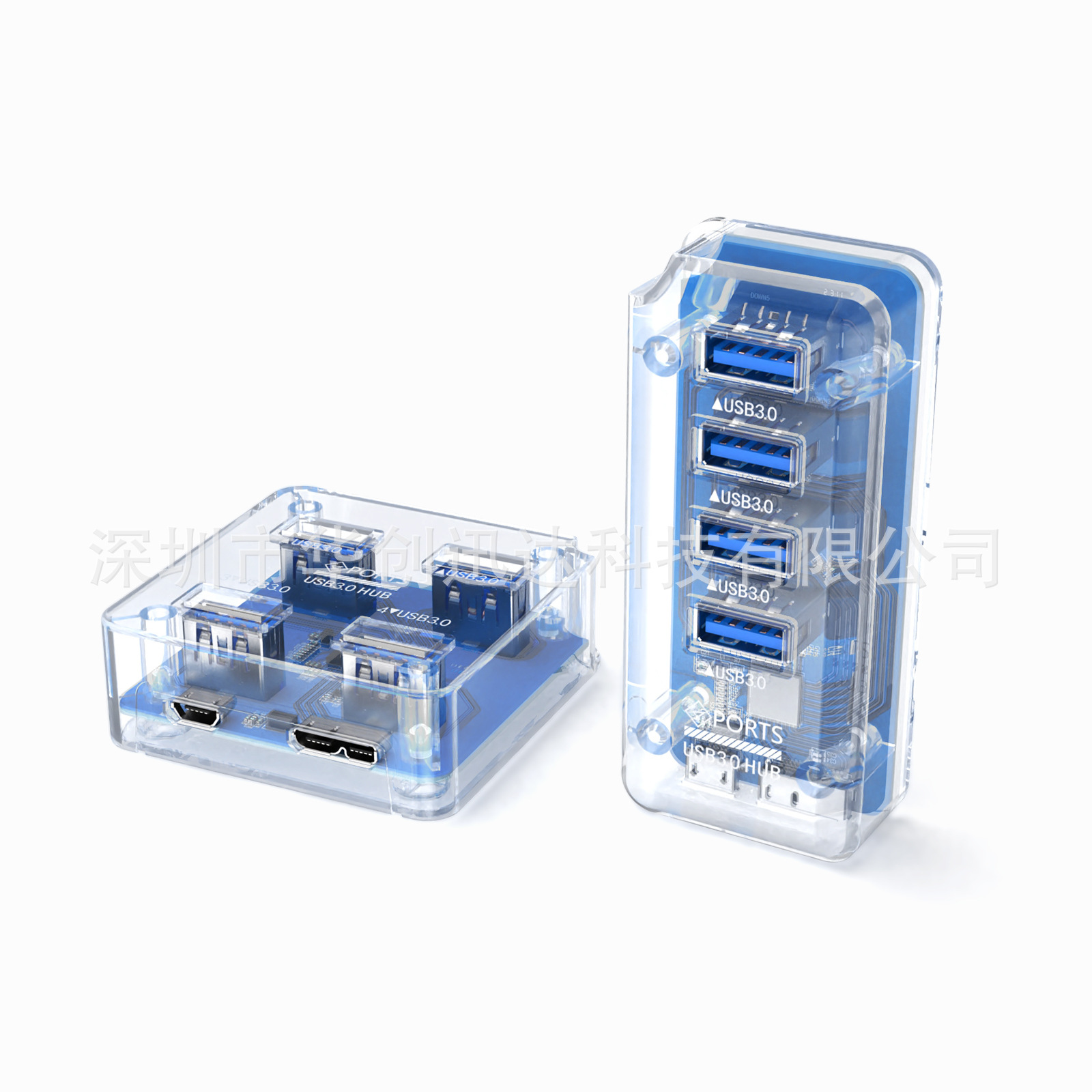개인 모델 USB3.0 스플리터 4 포트 허브 허브 투명 1 대 4 컴퓨터 다기능 도킹 스테이션 익스텐더