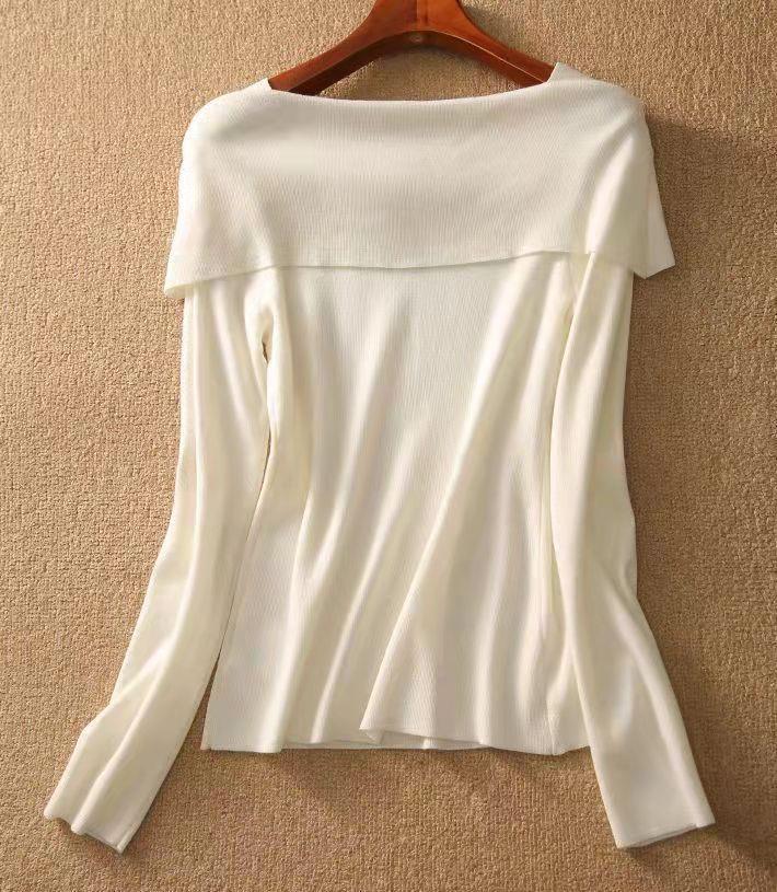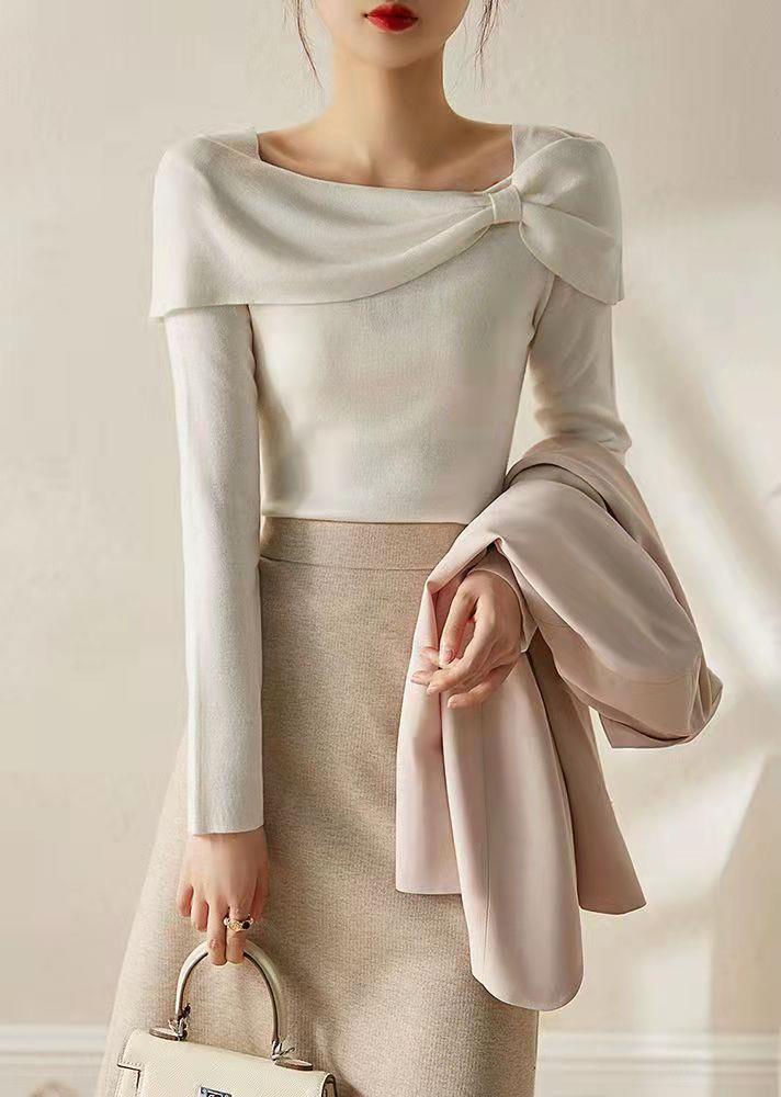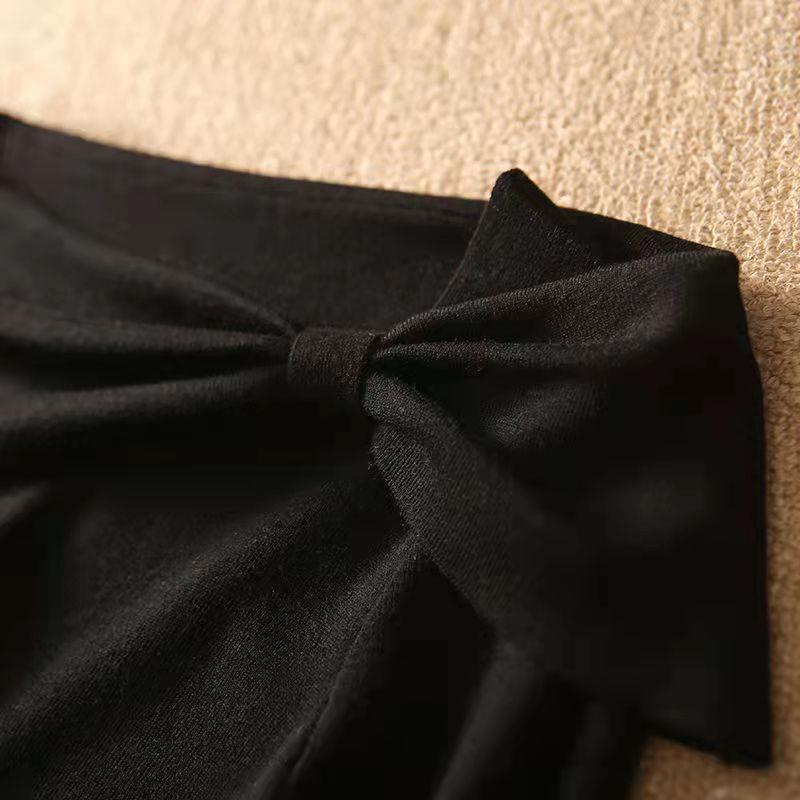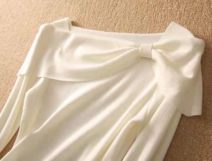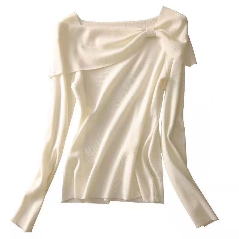 대외 무역 프랑스 우아한 활 작은 경사 칼라 긴팔 스웨터 여성 2024 가을 새로운 기질 최고 트렌드스토어 가기