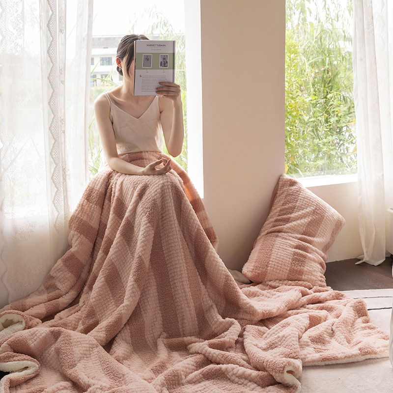 새로운 클래스 A 태국 토끼 양털 담요 부드러운 왁스 소파 담요 스트라이프 낮잠 담요 가을과 겨울 두꺼운 양고기 양털 담요스토어 가기