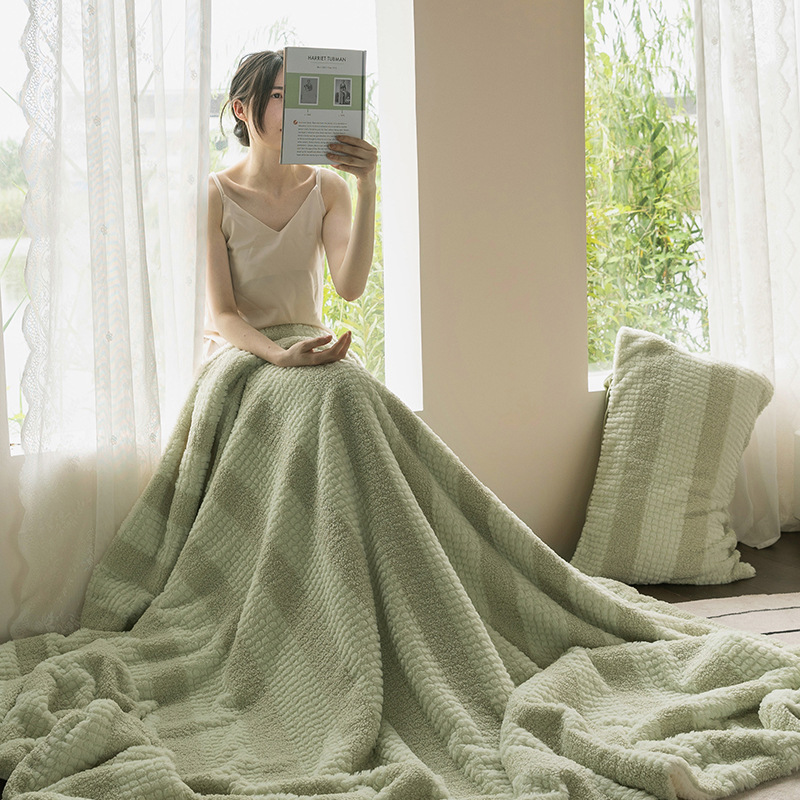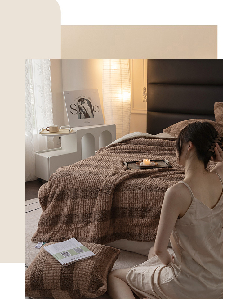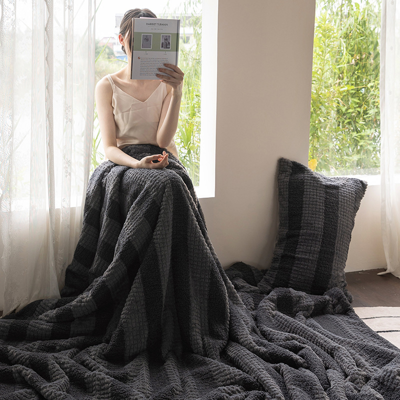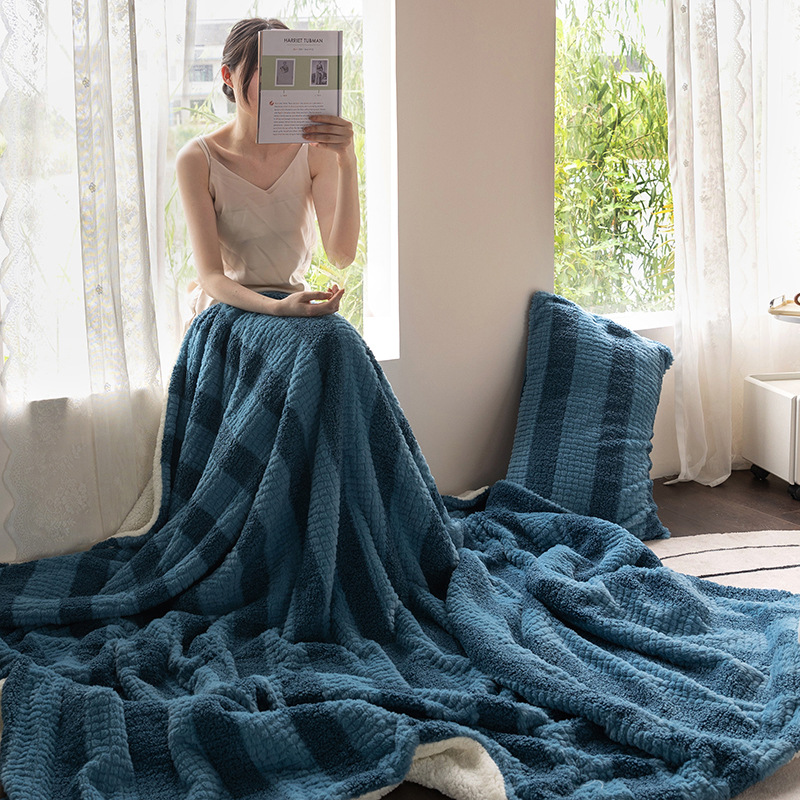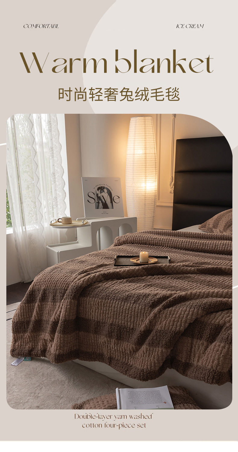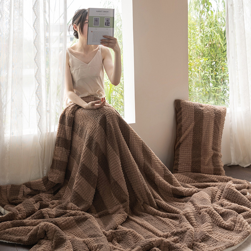 새로운 클래스 A 태국 토끼 양털 담요 부드러운 왁스 소파 담요 스트라이프 낮잠 담요 가을과 겨울 두꺼운 양고기 양털 담요