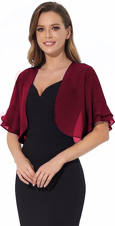2024 유럽과 미국의 아마존 여름 새 여성 쉬폰 연꽃 잎 소매 여성용 반팔 카디건 탑 자켓스토어 가기