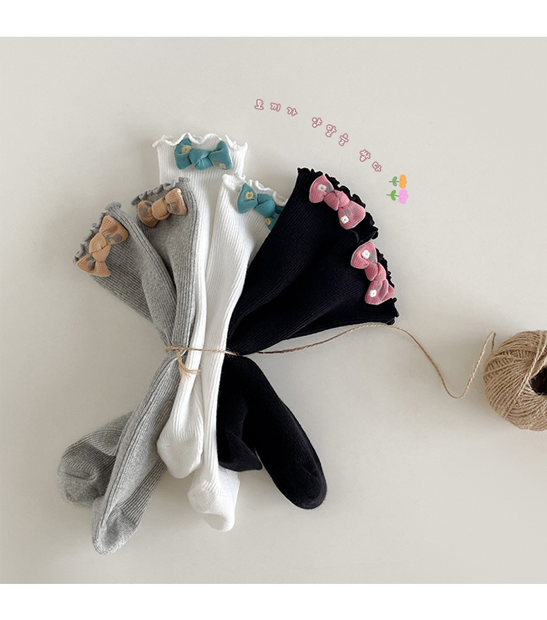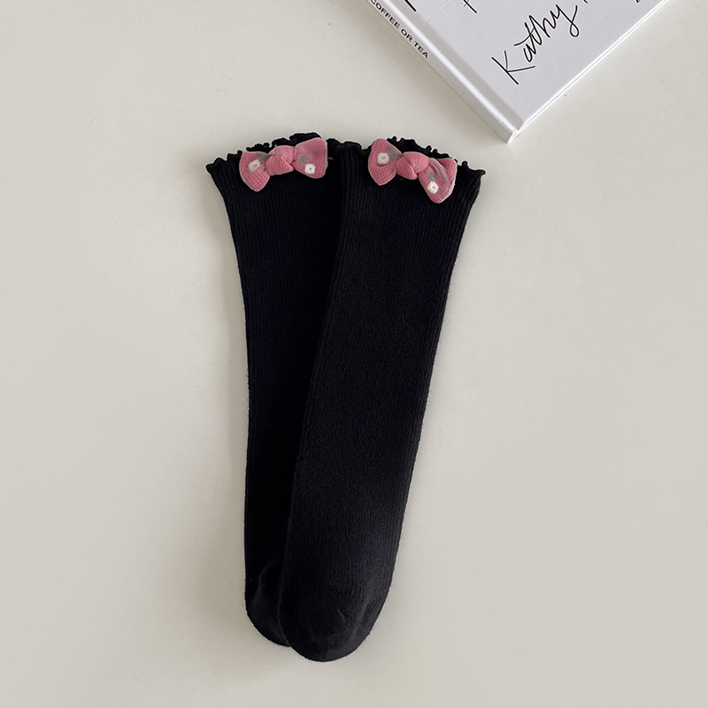 • ML23-566 다육 작은 꽃 매듭 더미 양말-블랙