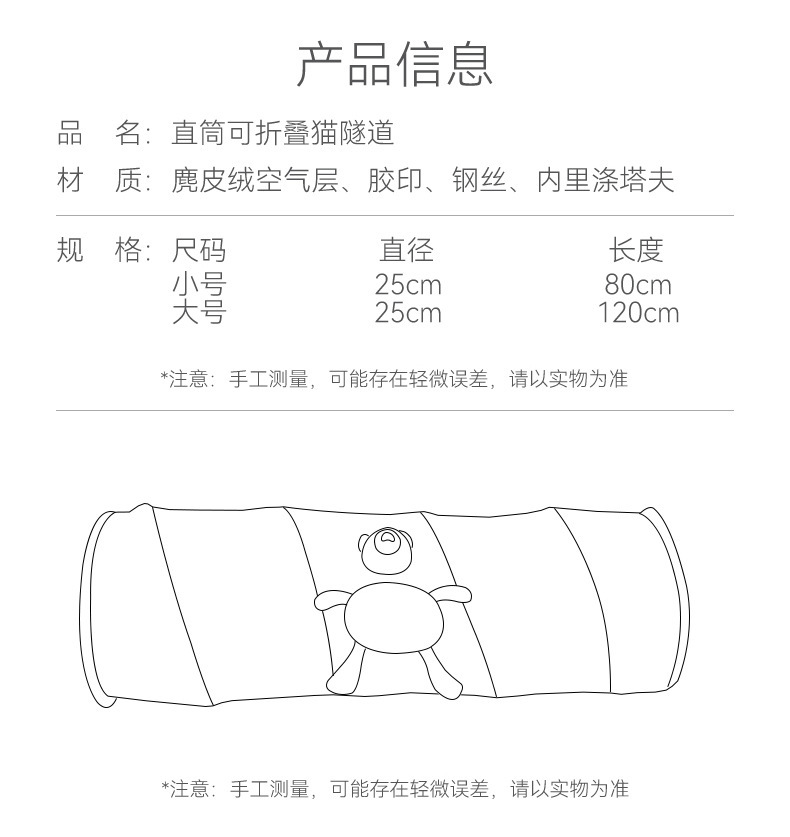 고양이 장난감 스트레이트 만화 고양이 터널 보관하기 쉬운 접이식 고양이 통로 자기 자극 및 지루함 완화 고양이 장난감 애완 동물 용품스토어 가기