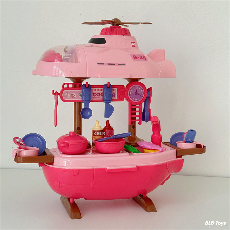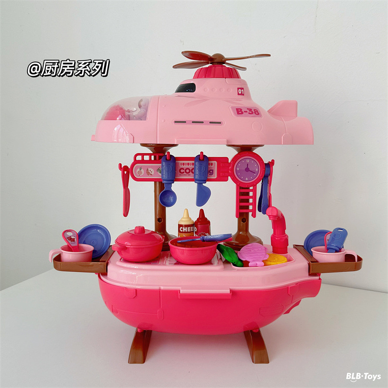 크로스 국경 어린이 놀이 집 장난감 비행기 잠수함 3-in-one 의사 주방 도구 테이블 세트 소년과 소녀를위한스토어 가기