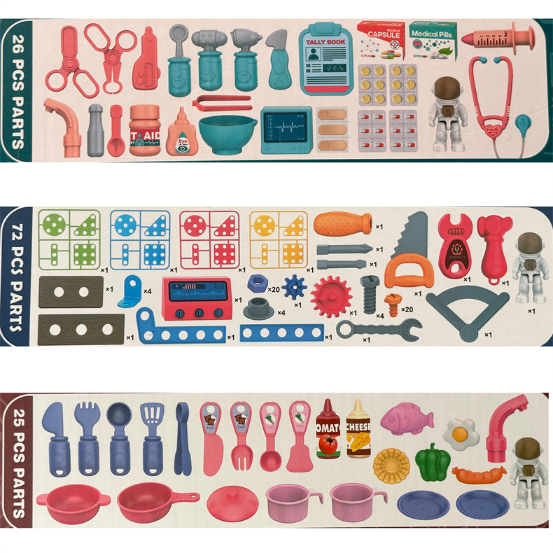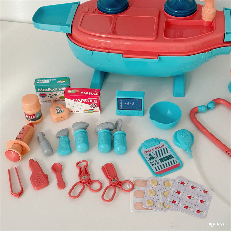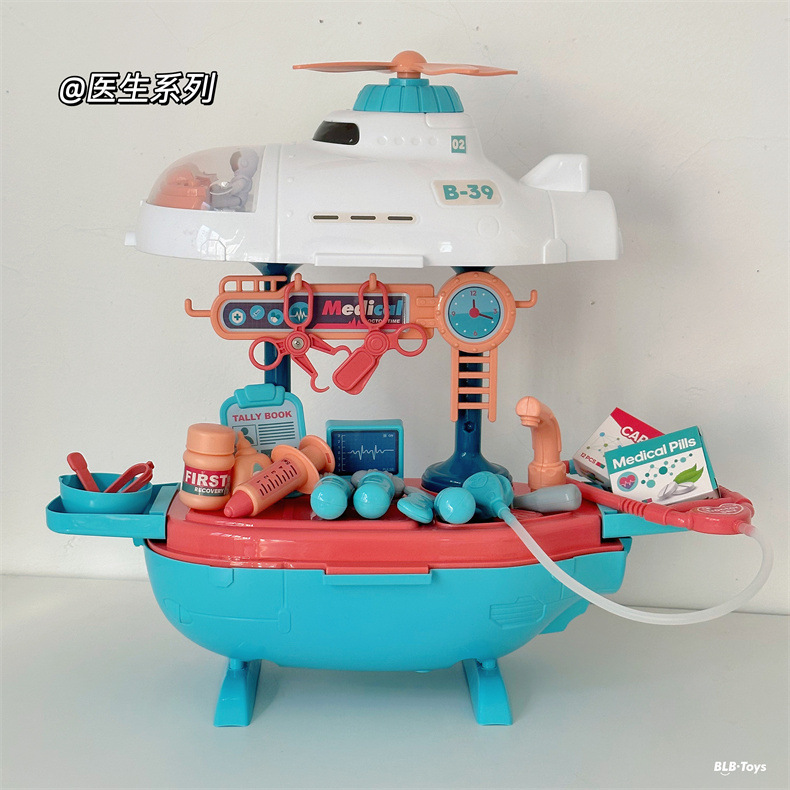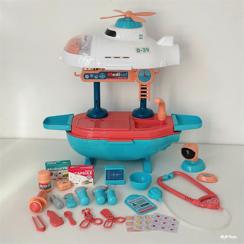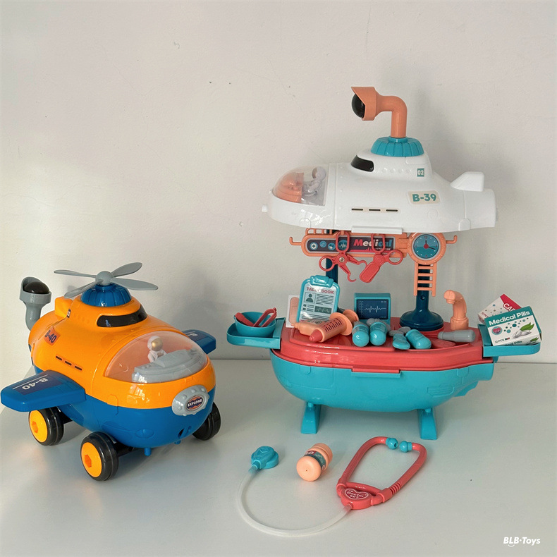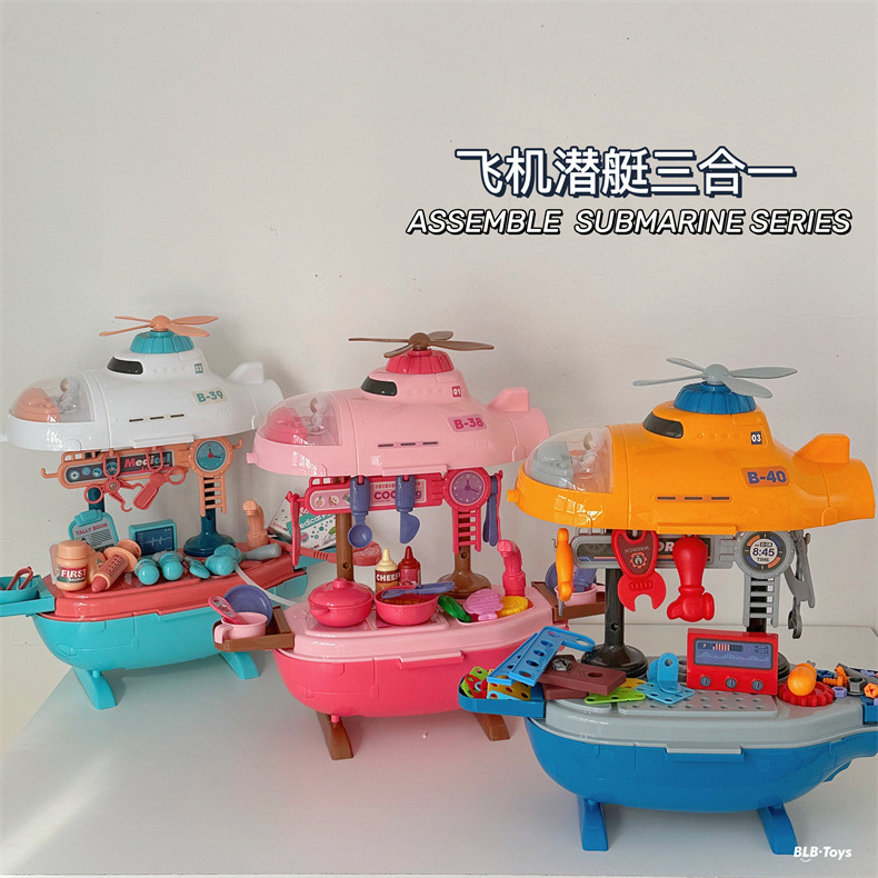 크로스 국경 어린이 놀이 집 장난감 비행기 잠수함 3-in-one 의사 주방 도구 테이블 세트 소년과 소녀를위한