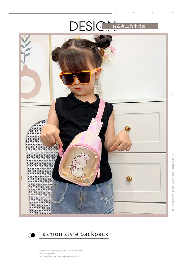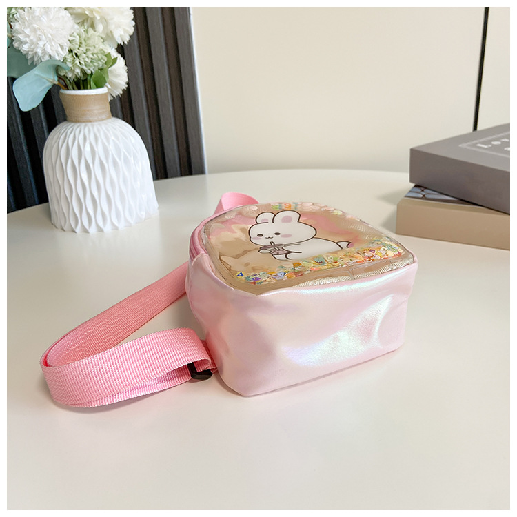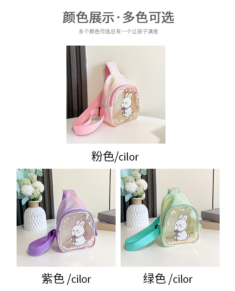 어린이 가방 2024 새로운 아기 만화 투명 가슴 가방 서양식 소녀 모래 토끼 허리 가방 크로스 바디 백 트렌디스토어 가기