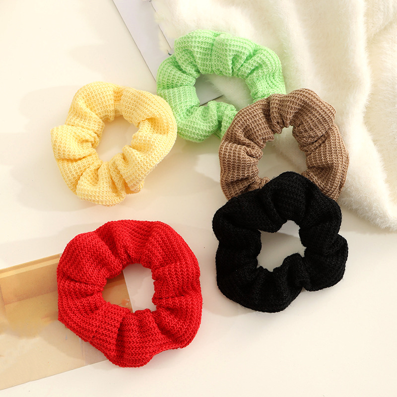 새로운 캔디 컬러 니트 헤어 링 여성용 와플 헤어 로프 타이 볼 헤드 고무 힘줄 다채로운 양모 큰 장 반지 모자스토어 가기