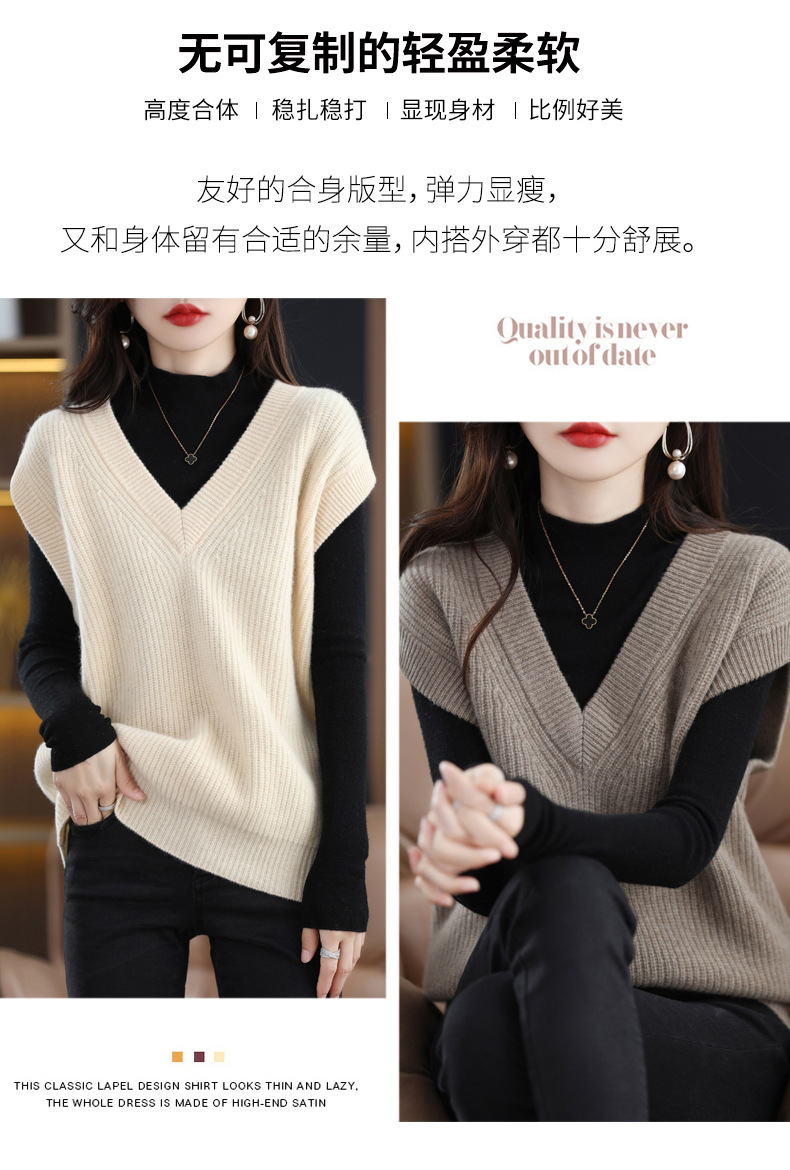 니트 조끼 여자의 가을 2023 새로운 V 넥 조끼 세련된 느슨한 유행 민소매 풀오버 스웨터 조끼스토어 가기