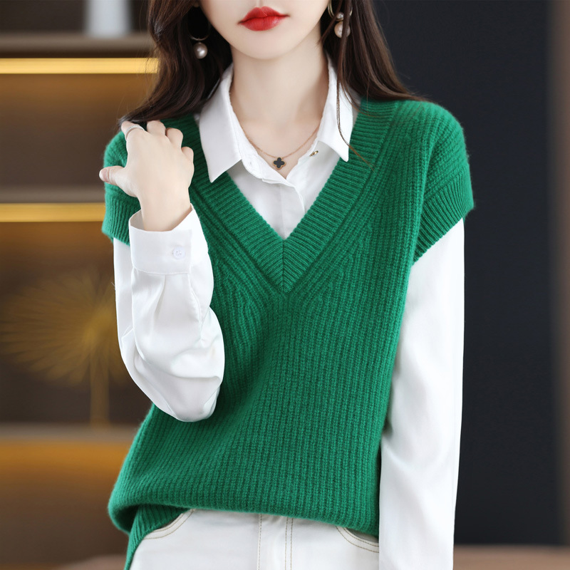 니트 조끼 여자의 가을 2023 새로운 V 넥 조끼 세련된 느슨한 유행 민소매 풀오버 스웨터 조끼
