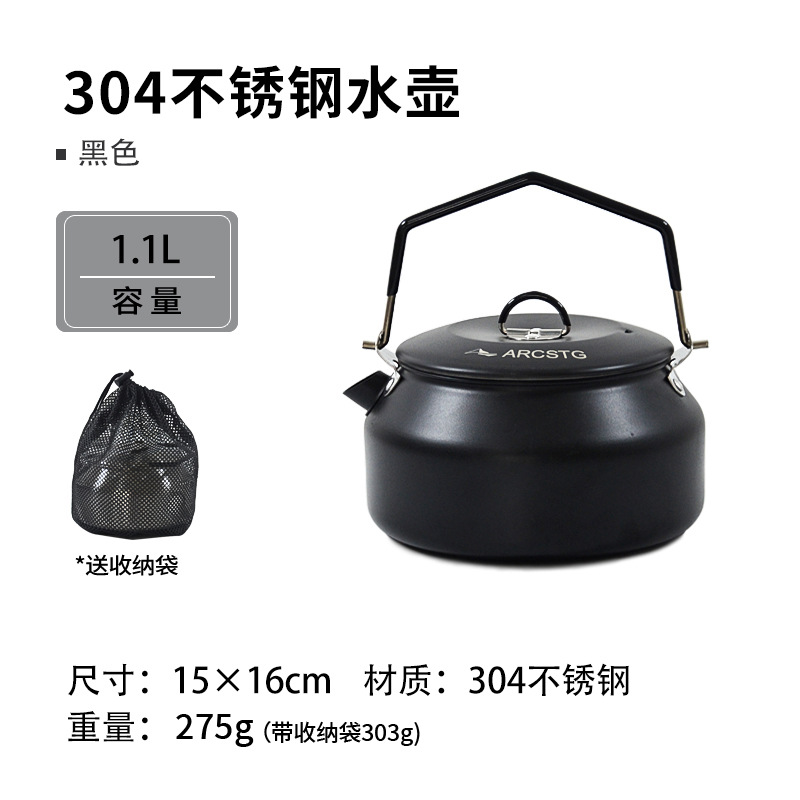 ARCSTG 야외 304 스테인레스 스틸 주전자 자율 주행 캠핑 요리 스테인레스 스틸 끓는 물 커피 포트 끓는 차 포트스토어 가기