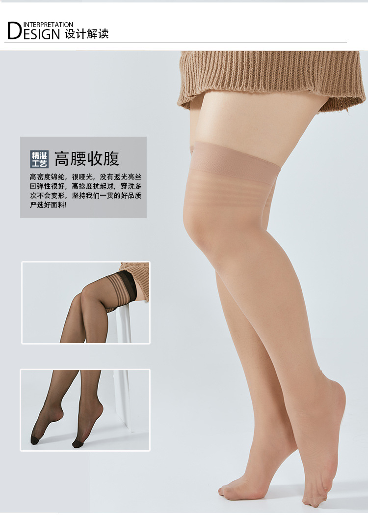 스타킹 여자의 여름 얇은 무릎 위 흰색 여름 블랙 실크 안티 후크 실크 플러스 사이즈 통통녀 스타킹 가벼운 다리 유물