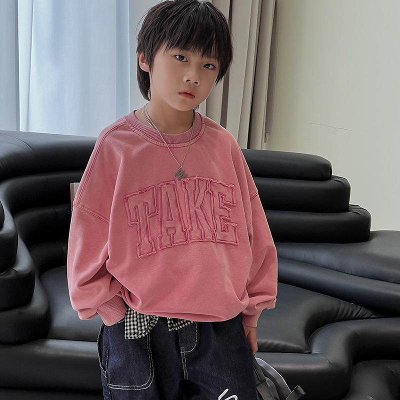 새로운 스웨터 어린이 가을 한국 스타일 주니어 핑크 패션 편지 패치 수 긴 소매 최고 소년의 풀오버스토어 가기