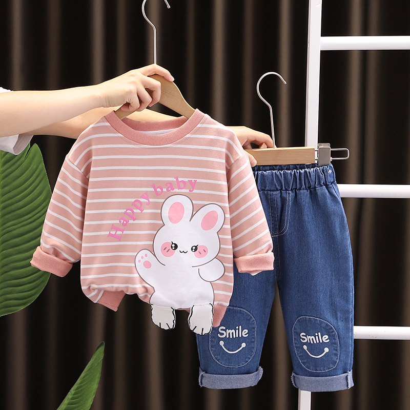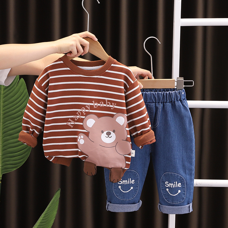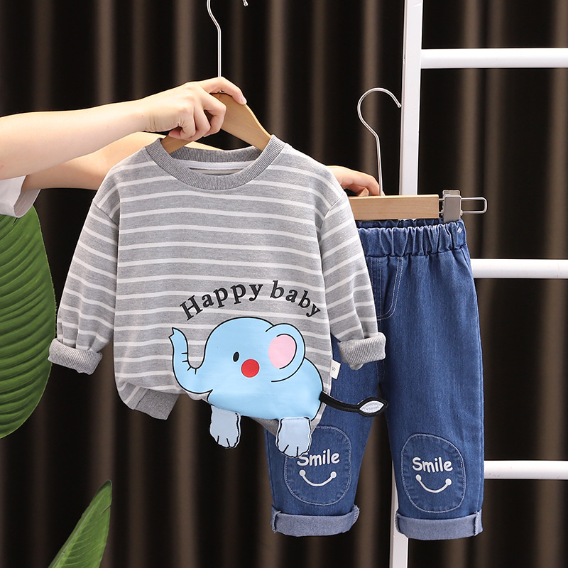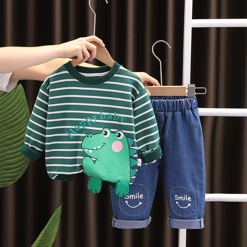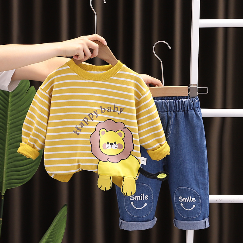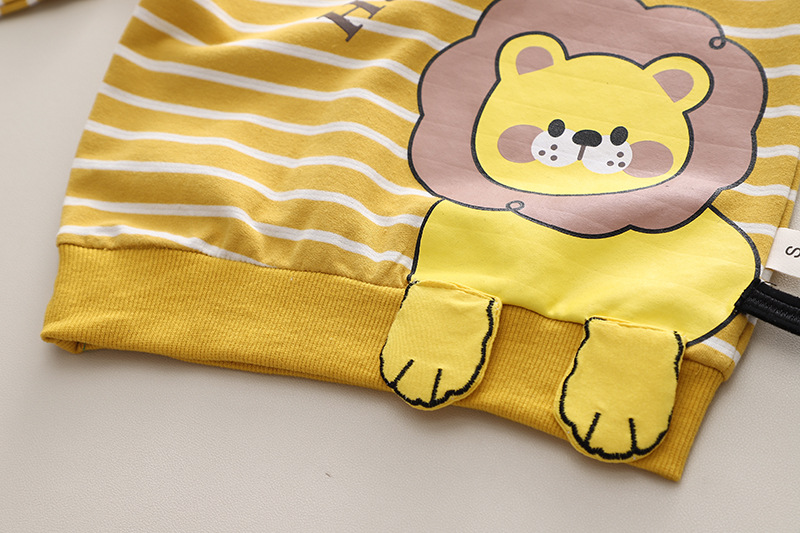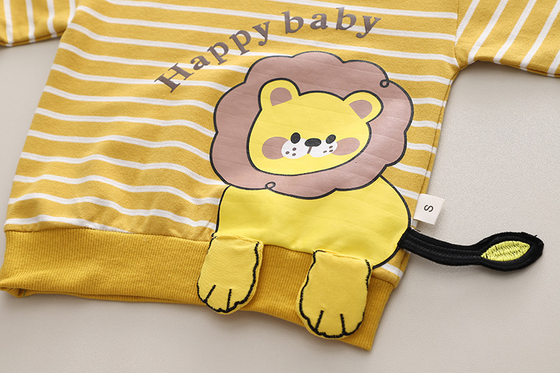 2023 가을 아동복 긴팔 만화 줄무늬 동물 소년 0-5 세 가을 2 피스 어린이 세트 조수스토어 가기