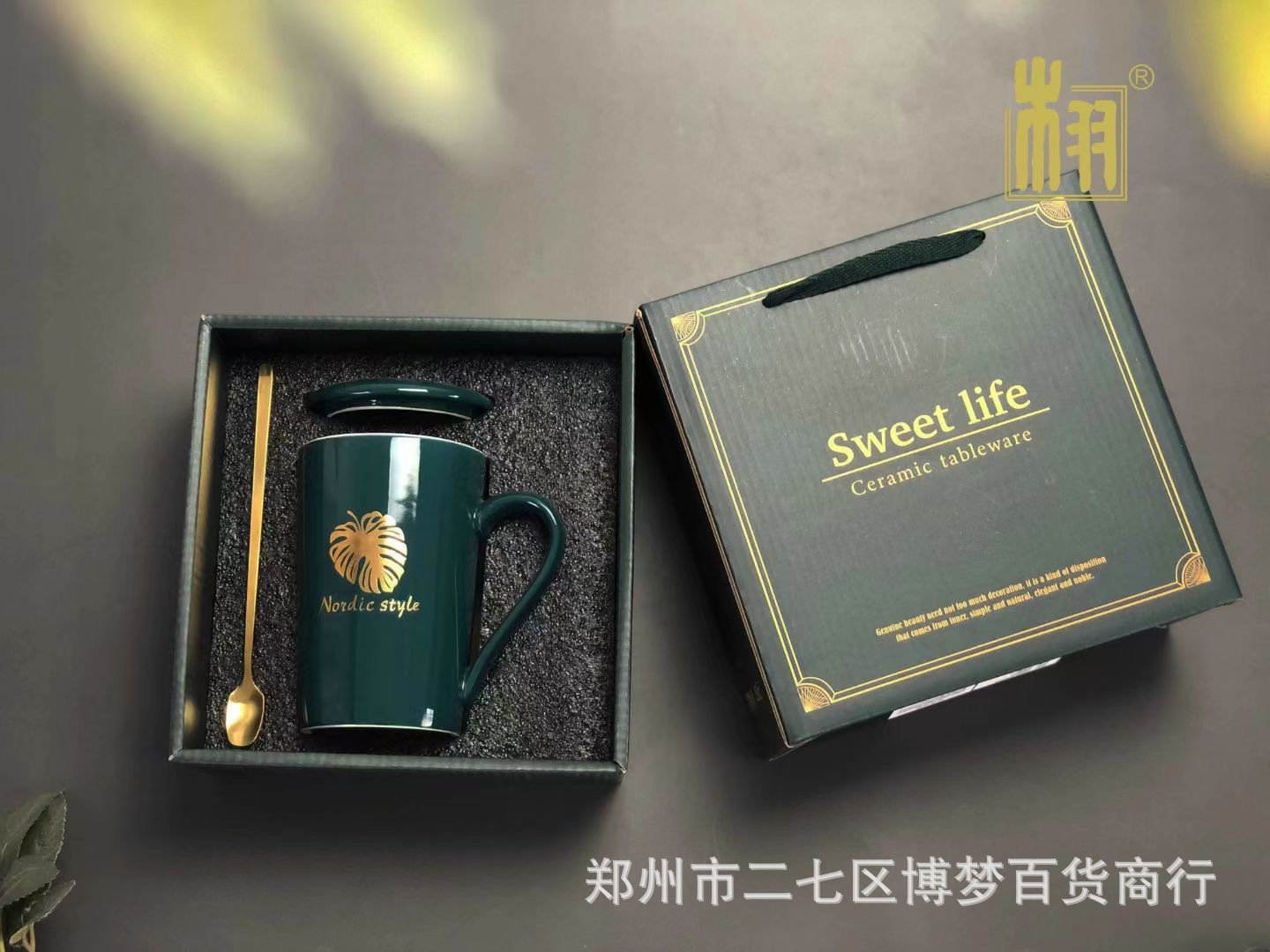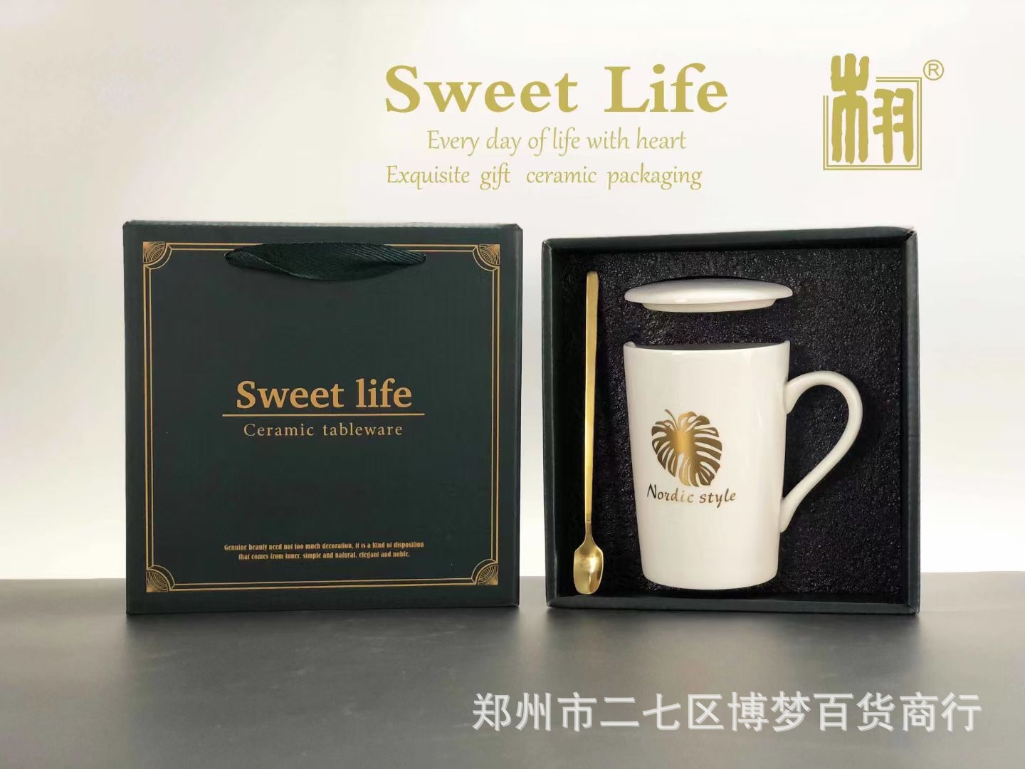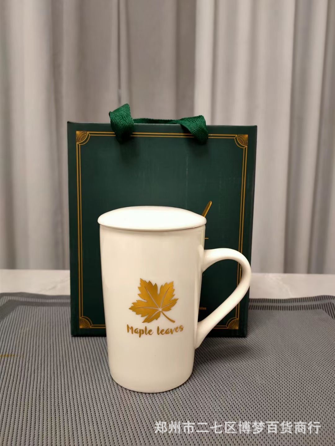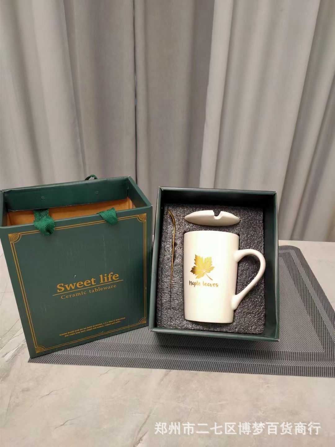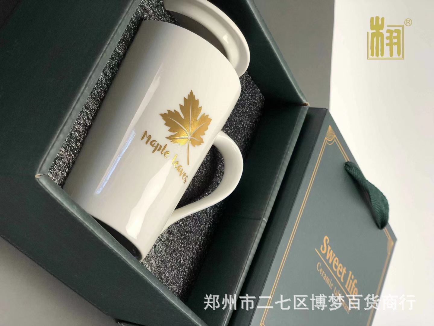 간단한 메이플 리프 머그 뚜껑과 숟가락 선물 상자 세라믹 컵 선물 상자 세트 발렌타인 데이 선물을 인쇄 할 수 있습니다스토어 가기