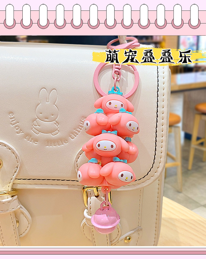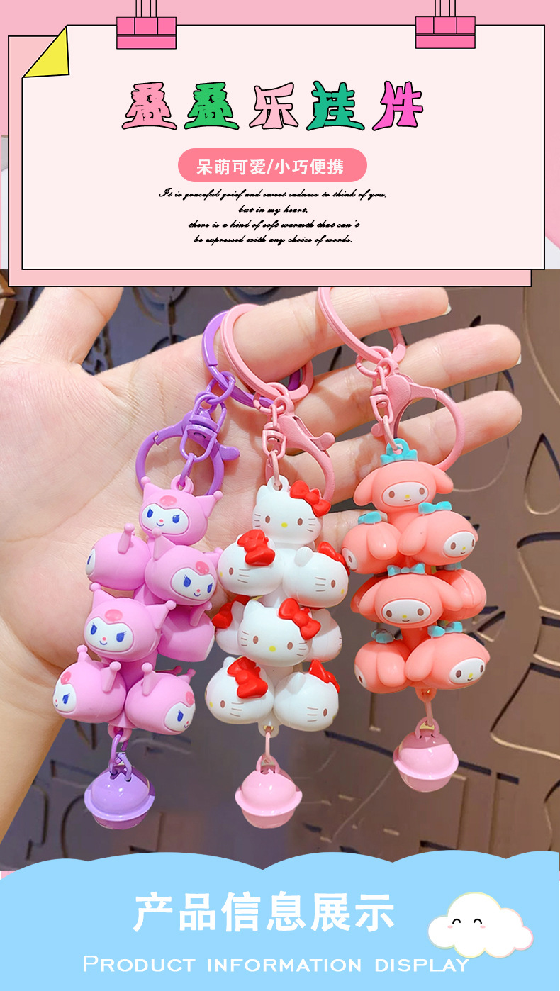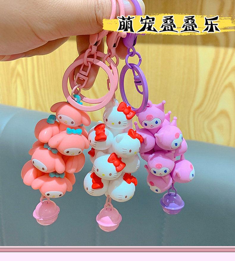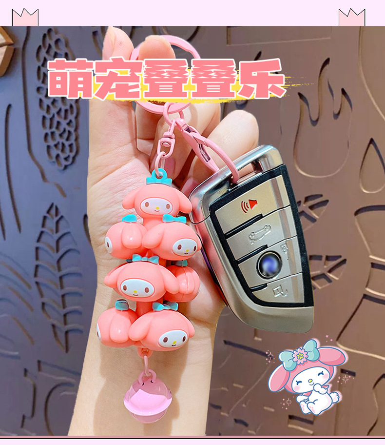 만화 귀여운 산리오 스택 음악 창조적 인 자동차 열쇠 고리 가방 펜던트 커플 작은 선물 도매스토어 가기
