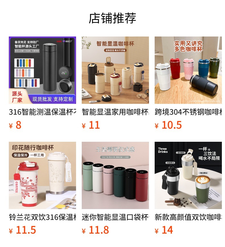 스마트 온도 표시 가정용 커피컵 316 스테인리스 보온컵 휴대용 컵 차량용 컵 휴대용 물컵 해외 배송스토어 가기