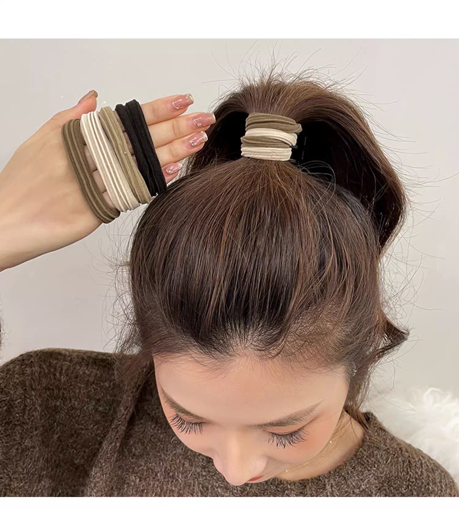고무 밴드 여성용 타이 로프 고무 밴드 두꺼운 높은 탄성 내구성 학생 블랙 헤어 로프 가죽 커버 성인 모자스토어 가기