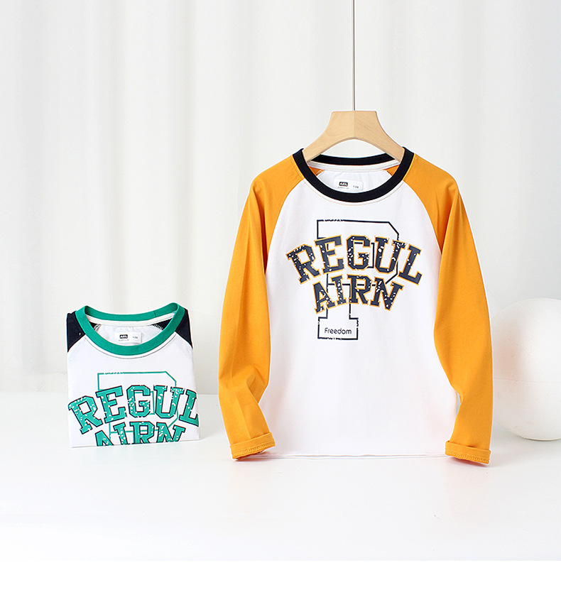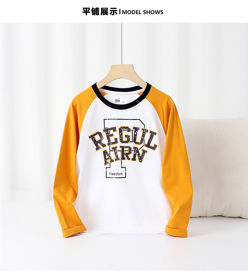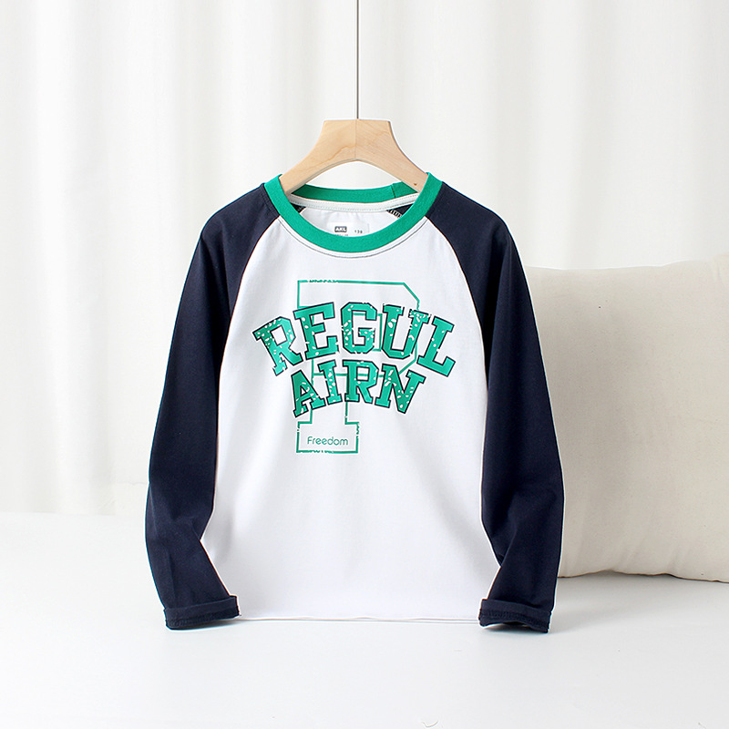 봄 2025 한국어 새 소년 긴팔 티셔츠 중형 및 대형 어린이 대비 색 라글란 탑 어린이 바닥 셔츠 도매스토어 가기