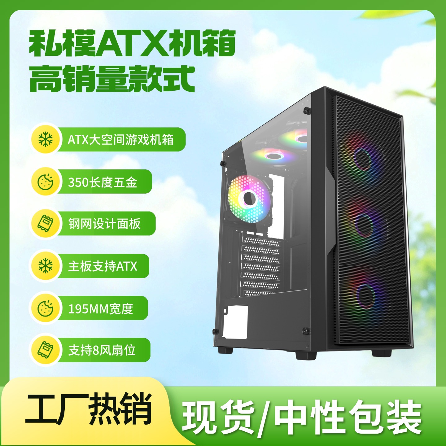 跨境发光ATX玻璃侧板铁网台式机PC Gaming Case游戏机箱电脑机箱