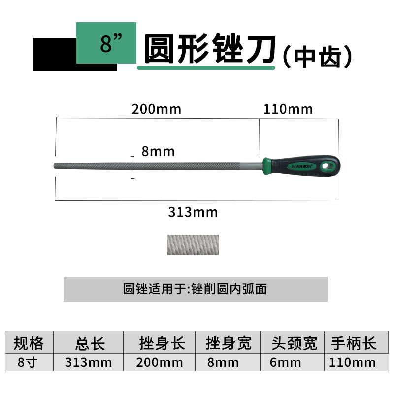 • 고탄소강 담금질 8 인치 [반원형 파일]