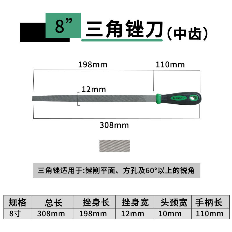 • 고탄소강 담금질 8 인치 [트라이앵글 파일]