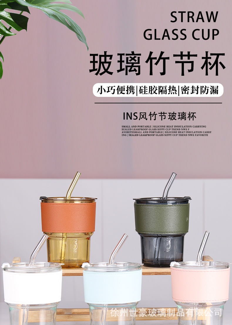 그물 레드 크리에이티브 대나무 컵 유리 흡입 튜브 컵 작은 선물 우유 차 컵 커피 컵 개업 활동 기프트 컵 도매