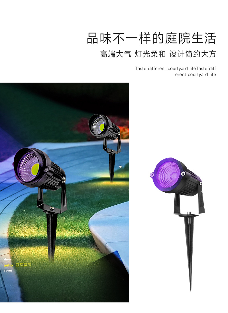 국경 야외 방수 COB 트리 램프 3w 보라색 다채로운 원격 제어 RGB 정원 빌라 안뜰 트리 램프 도매