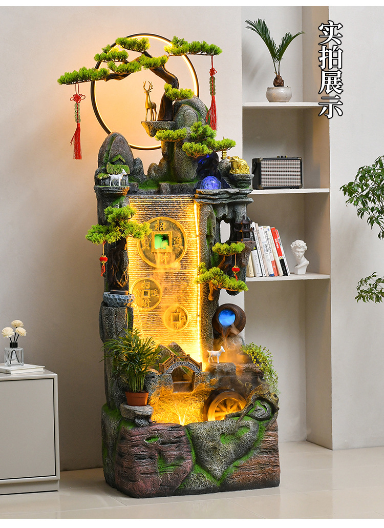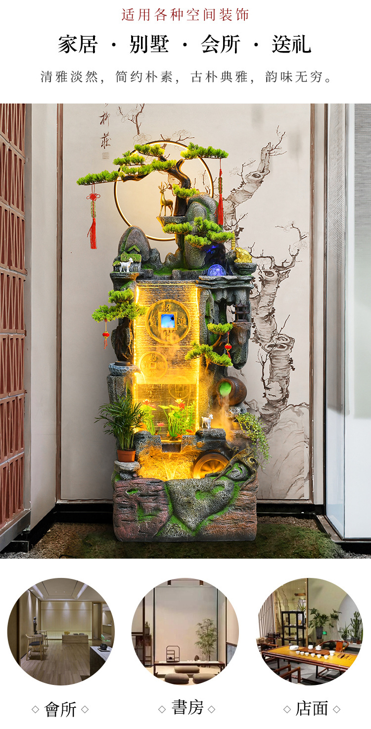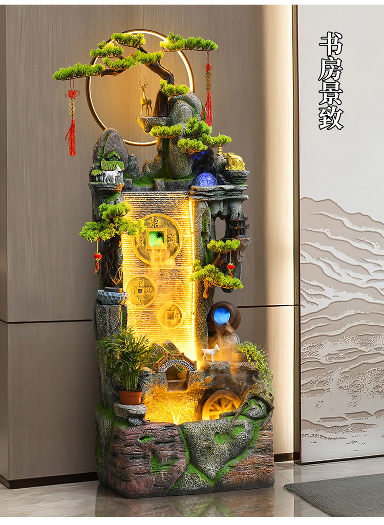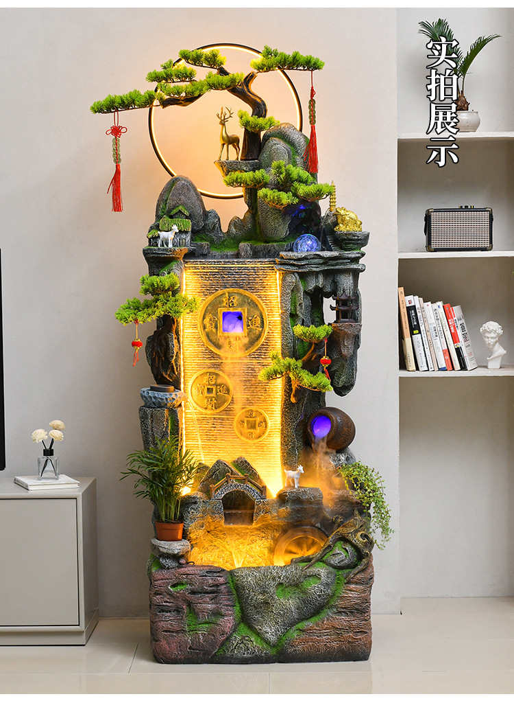 새로운 중국 스타일 거실 바닥과 흐르는 물 돈 장식품 사무실 장식 바위 분수 순환 물 탱크 물 커튼 벽스토어 가기