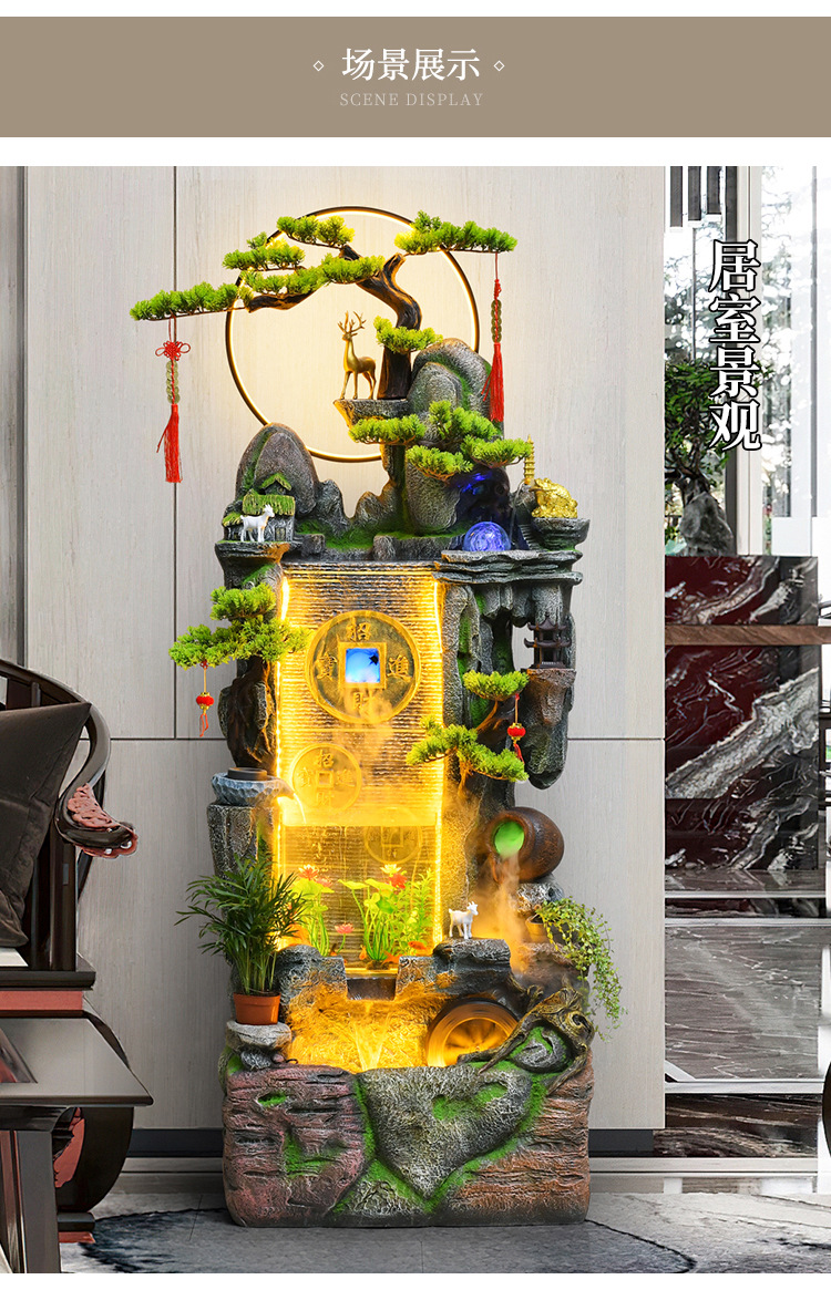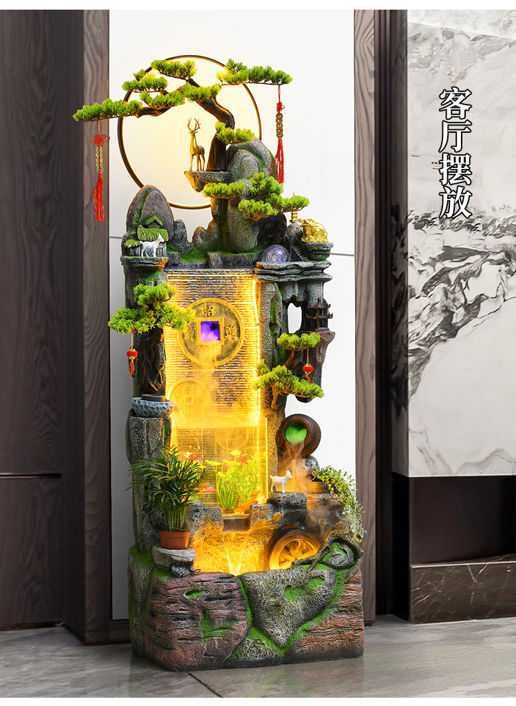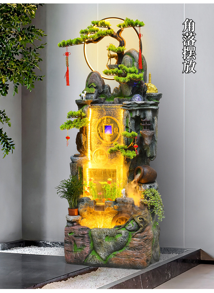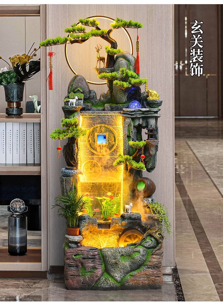 새로운 중국 스타일 거실 바닥과 흐르는 물 돈 장식품 사무실 장식 바위 분수 순환 물 탱크 물 커튼 벽스토어 가기