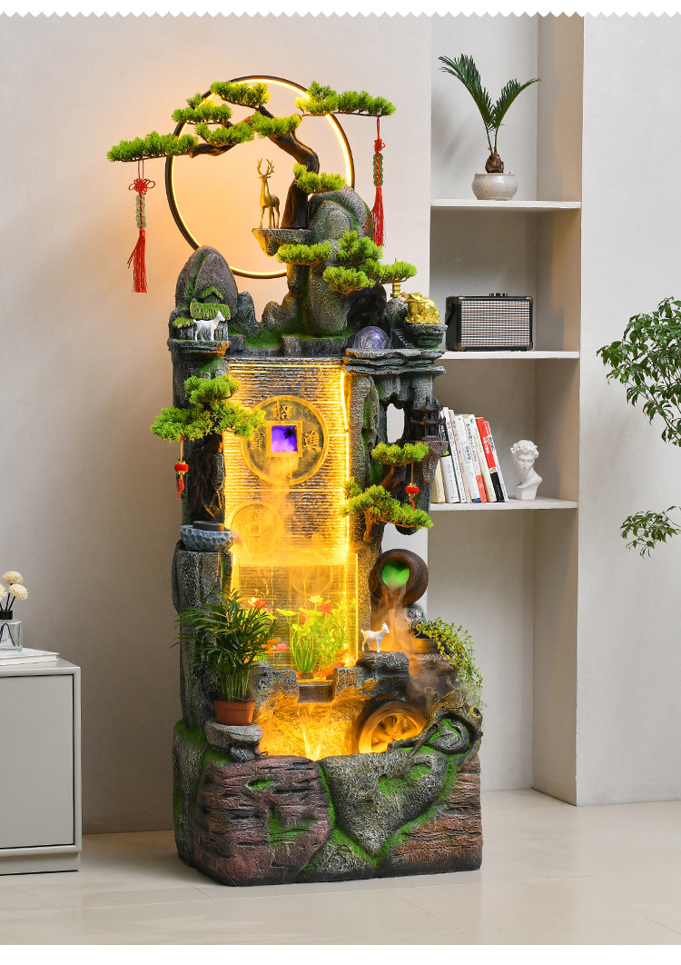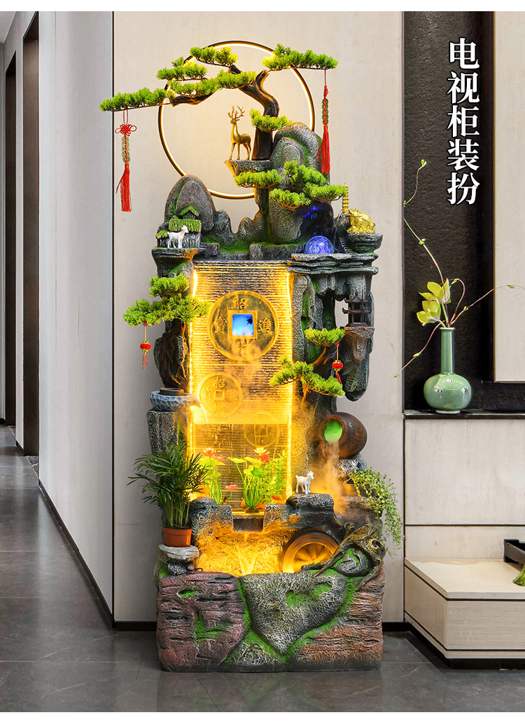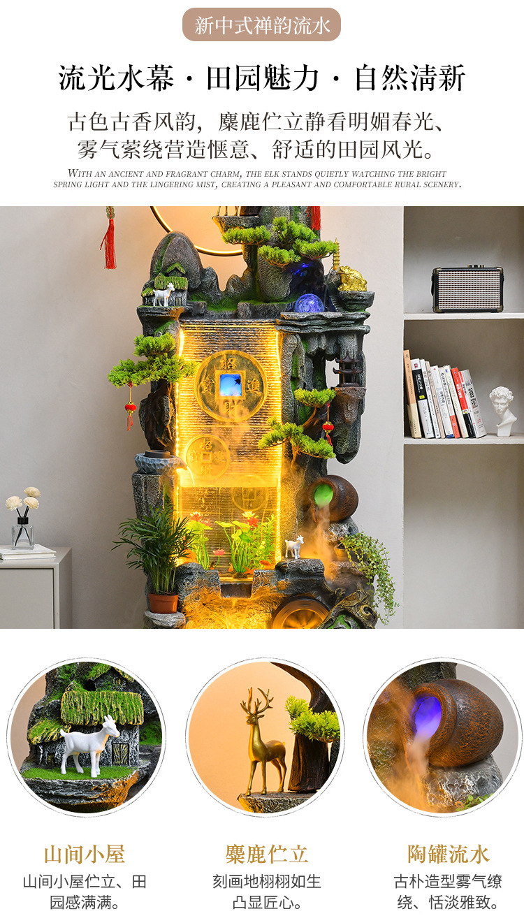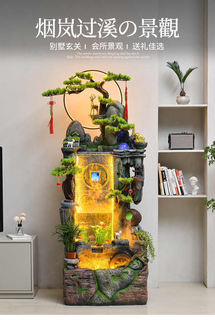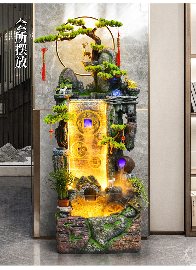 새로운 중국 스타일 거실 바닥과 흐르는 물 돈 장식품 사무실 장식 바위 분수 순환 물 탱크 물 커튼 벽