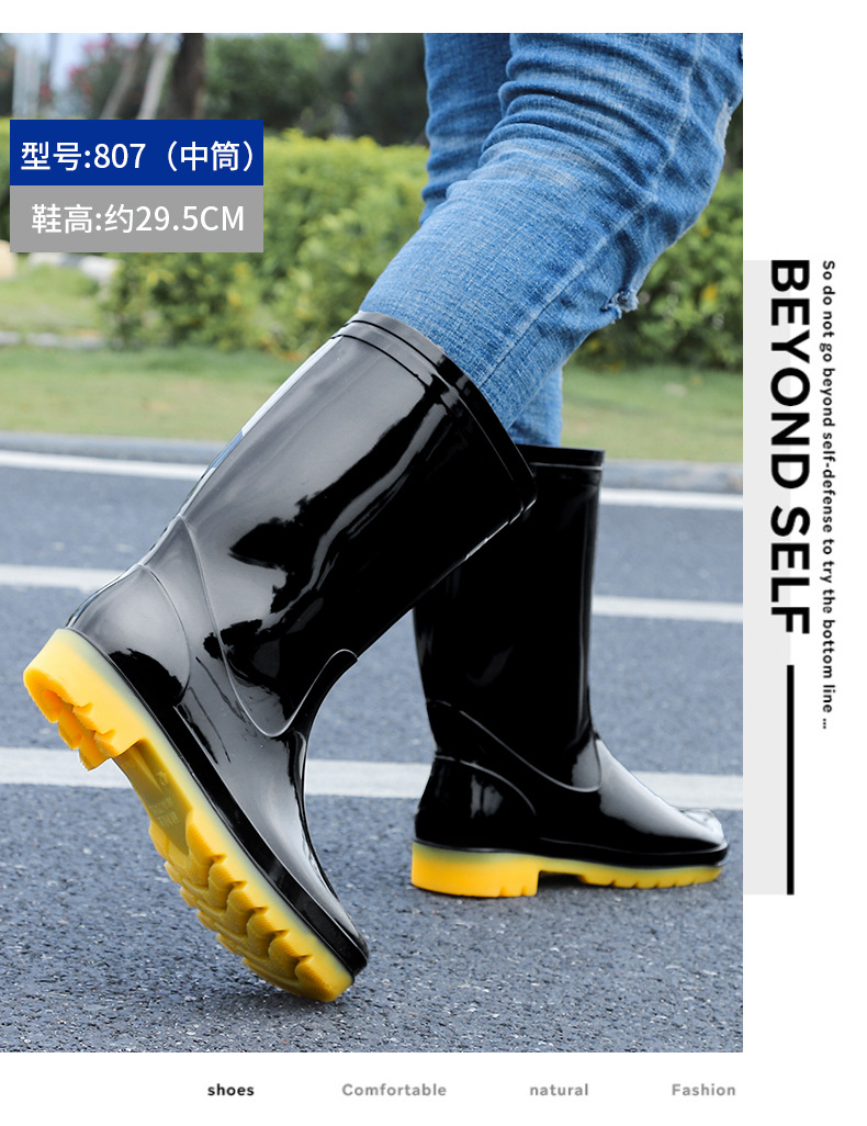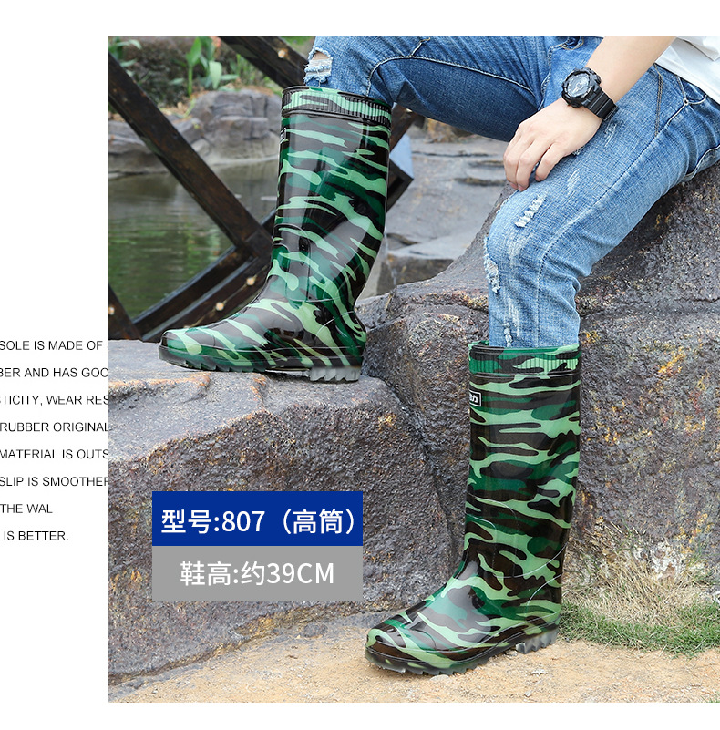 정품 Huili 비 신발 남성용 높은 장화 미끄럼 방지 쇠고기 단독 성인 미끄럼 방지 쇠고기 비 신발 도매스토어 가기