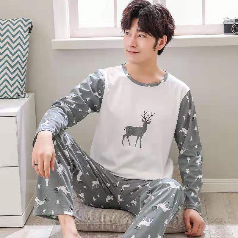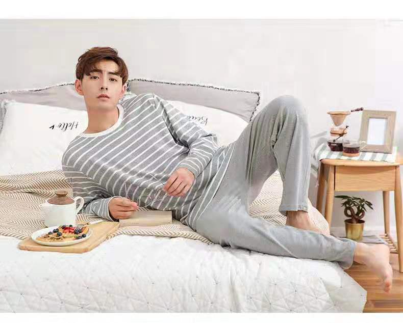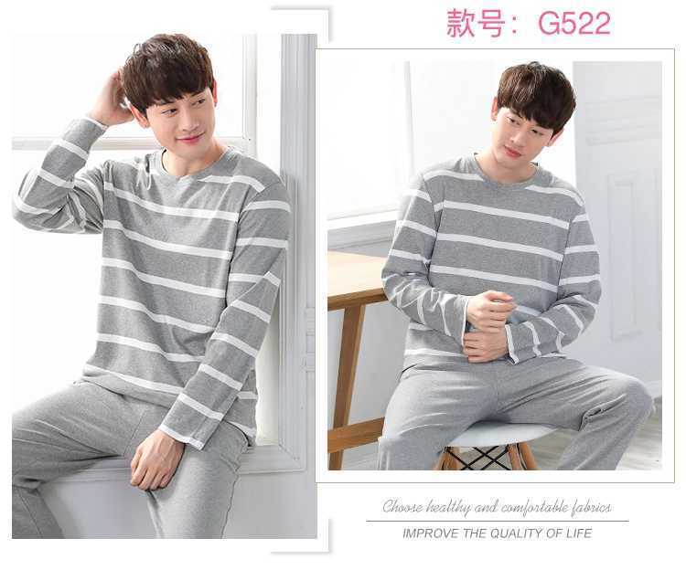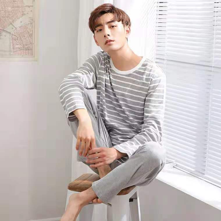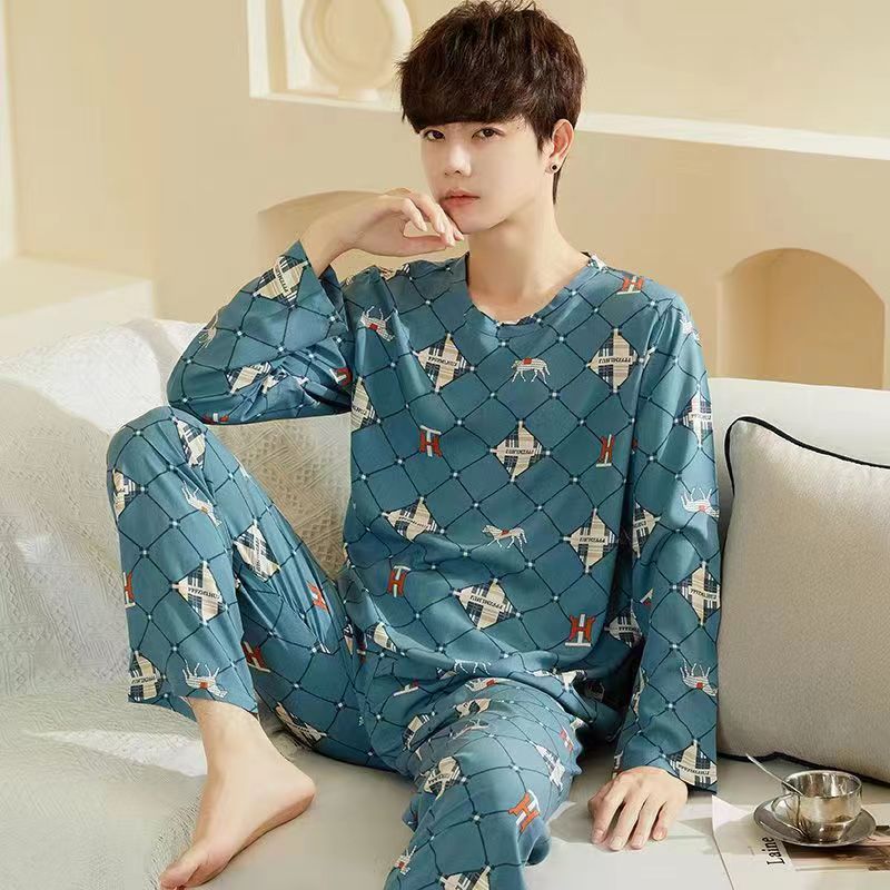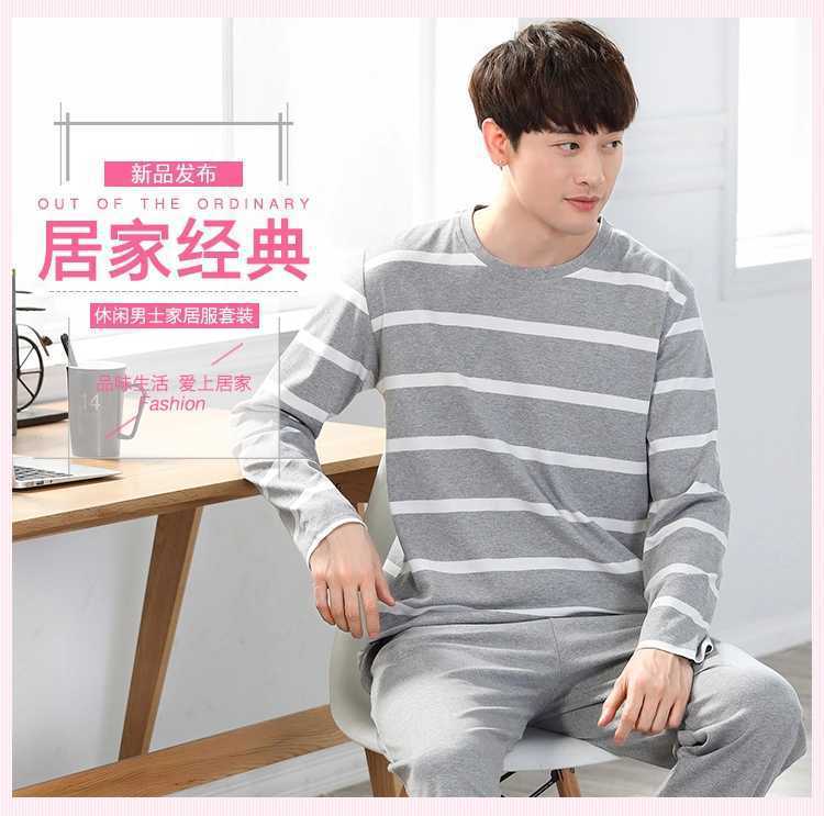 새로운 잠옷 남자의 긴 소매 모조 면 봄과 가을 남자의 청소년 가을과 겨울 일 가정 의류 세트 크로스 보더 라이브 도매