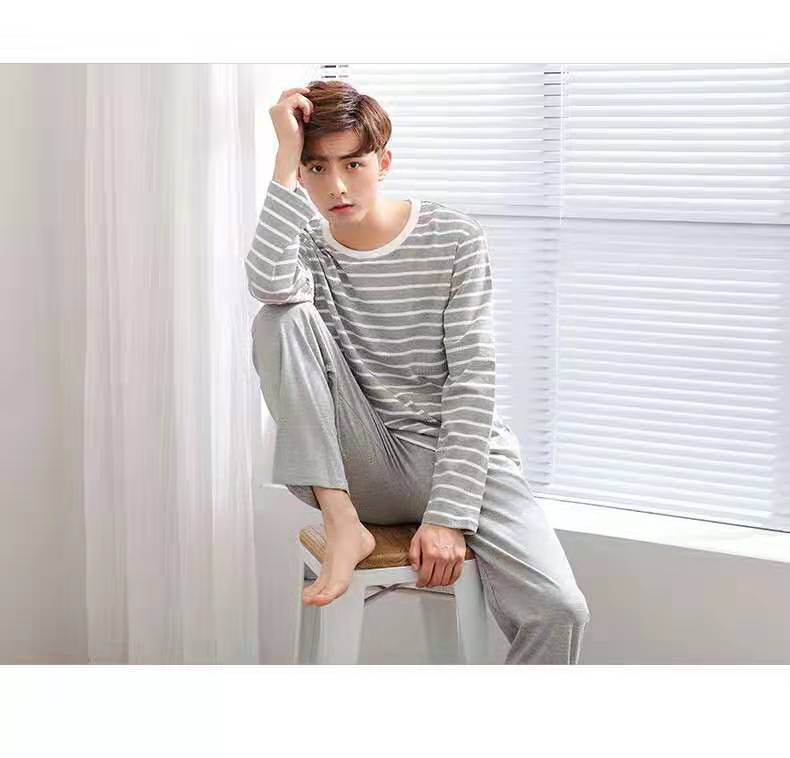 새로운 잠옷 남자의 긴 소매 모조 면 봄과 가을 남자의 청소년 가을과 겨울 일 가정 의류 세트 크로스 보더 라이브 도매스토어 가기